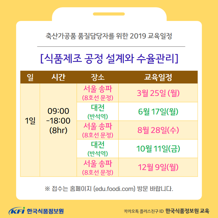 연간교육일정을 확인하셨다면, 교육접수를 위해 edu.foodi.com 홈페이지를 방문해주세요.