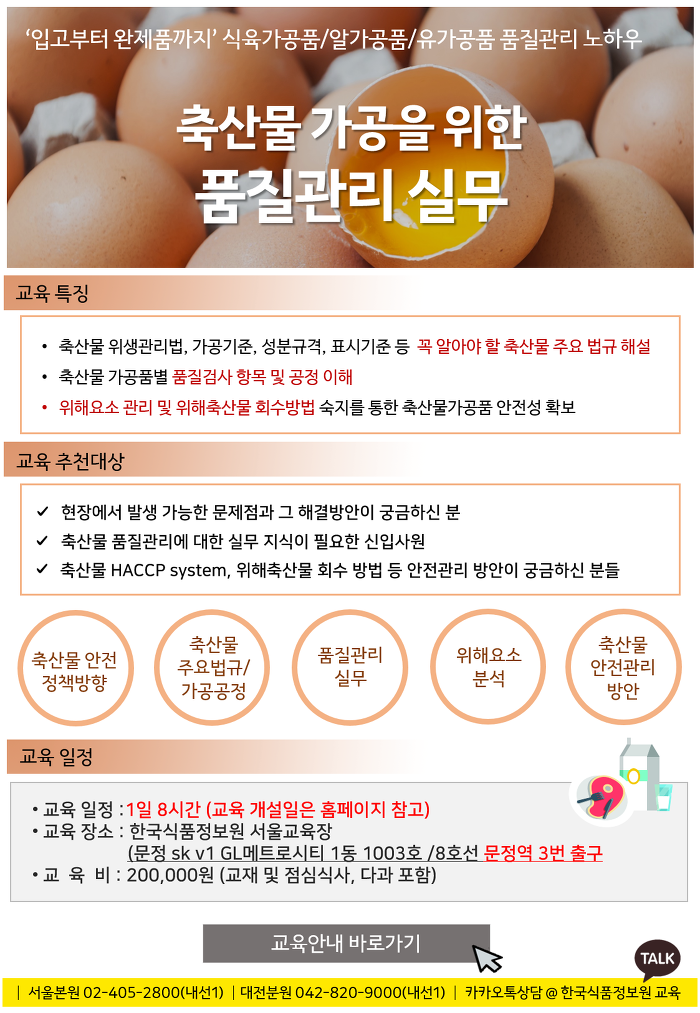 식육가공품 / 알가공품 / 유가공품 등 축산물 유래 제품을 제조가공하는 업체에 유익한 교육 소개 드리겠습니다.