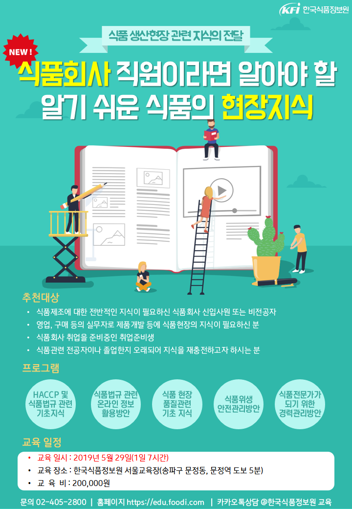 식품회사 현장에서 많이 활용하는 실무용어 및 업무 기초자료를 습득하실 수 있는 교육이 2019년 5월 29일 첫 선을 보입니다!