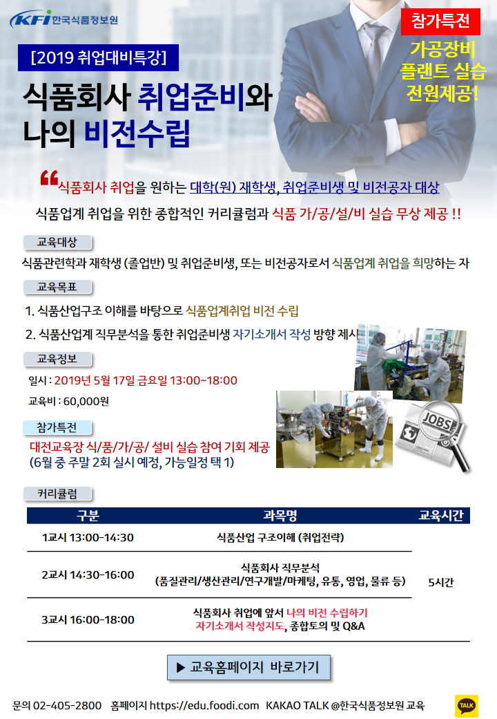식품업계 진입을 위한. 전문 취업 교육을 제공합니다.