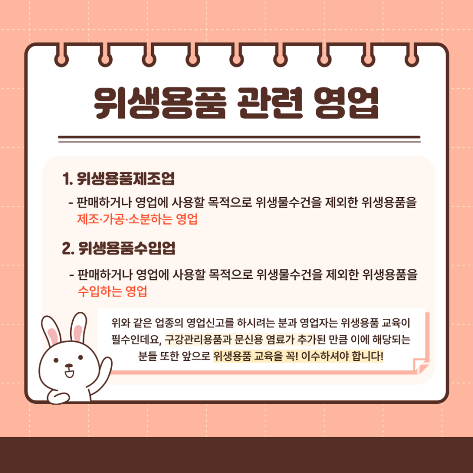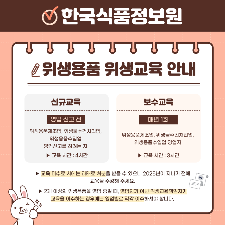앞으로 위생용품 교육을 꼭! 이수하셔야 합니다!