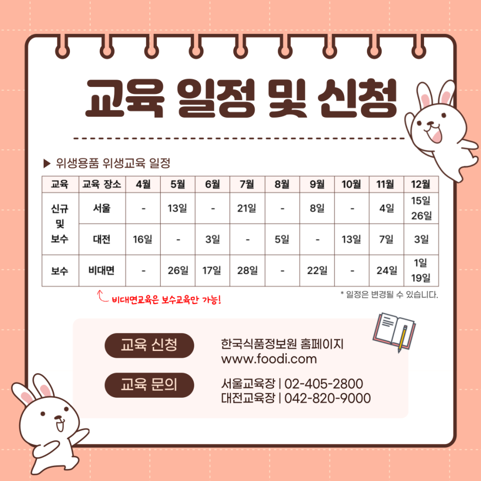 한국식품정보원의 위생용품 위생교육 일정은 다음과 같습니다.