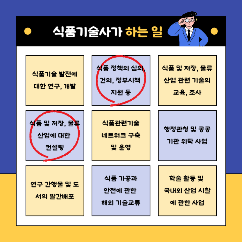 산업체에 컨설팅 등을 할 수도 있는등, 식품 산업의 멘토로써 활동하게 됩니다.
