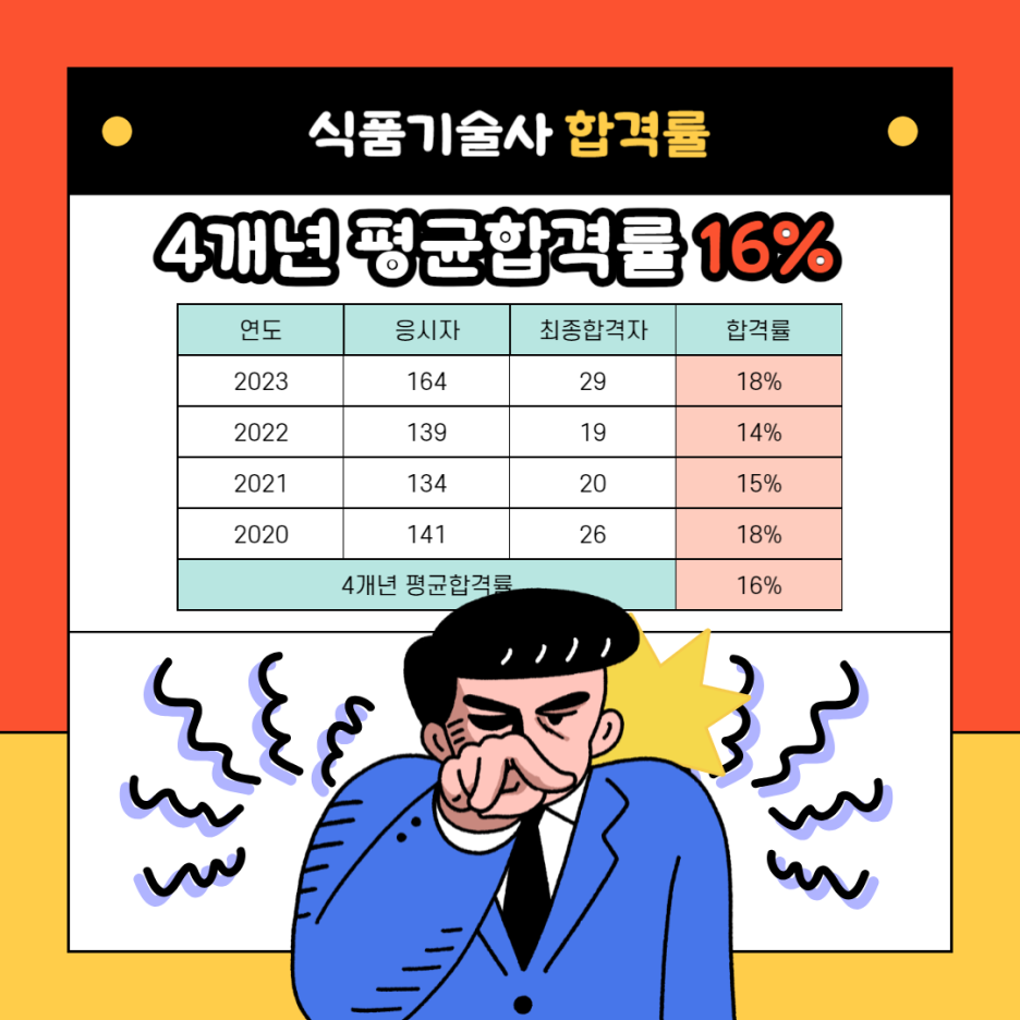 식품기술사의 합격률은 그렇게 높지 않은, 굉장히 까다로운 시험입니다.
