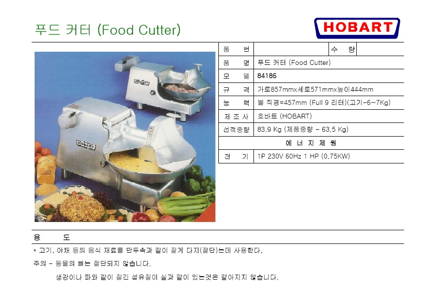 호바트 푸드커터기 84186 HOBART FOOD CUTTER 84186