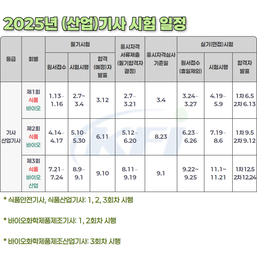 [KFI] 2025년 국가기술자격검정 시행일정 : 기술사 / (산업)기사 / 기능사