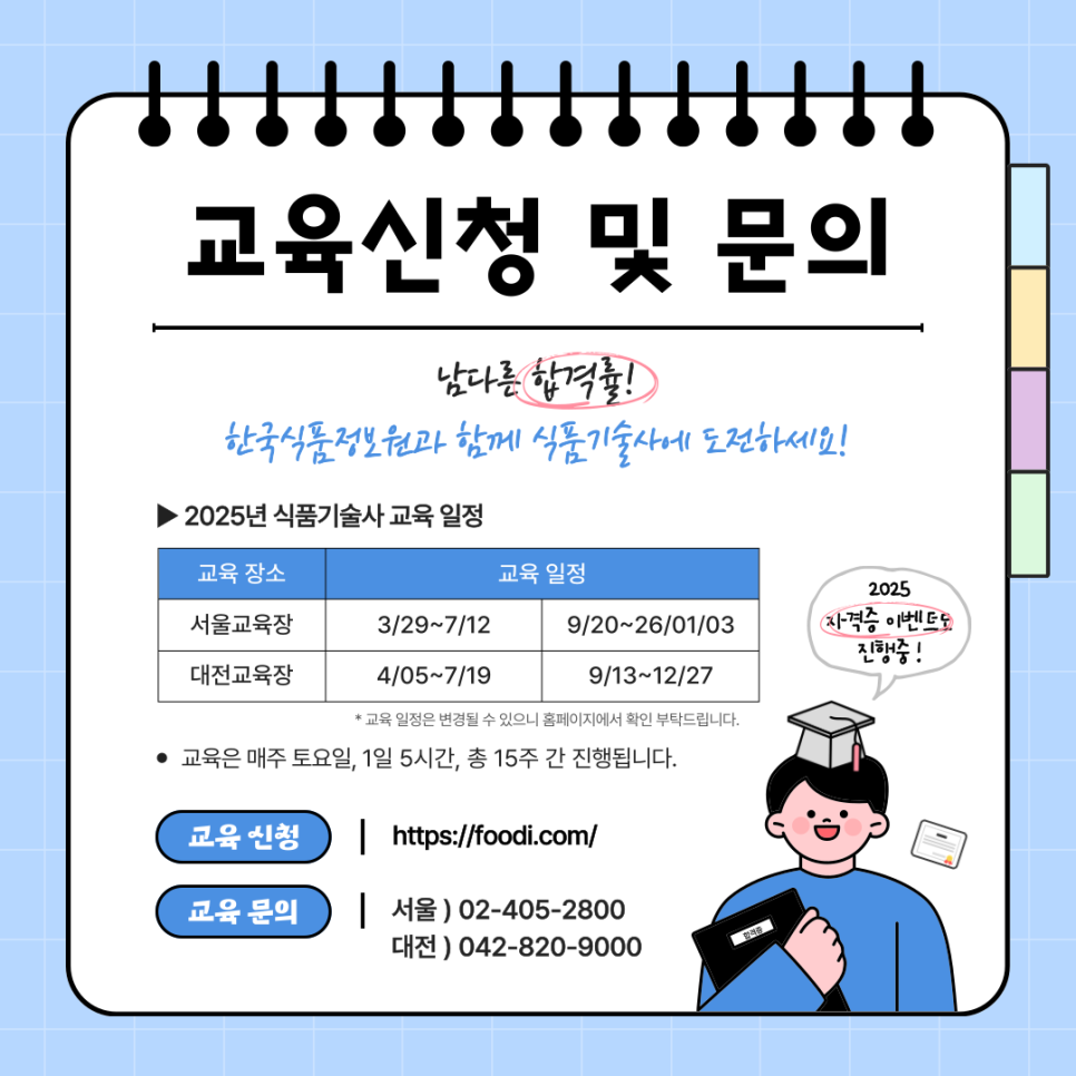 다만, 교육 일정은 변경될 수 있으니 한국식품정보원 홈페이지에서 한번 더 체크하는 거 잊지 마세요!