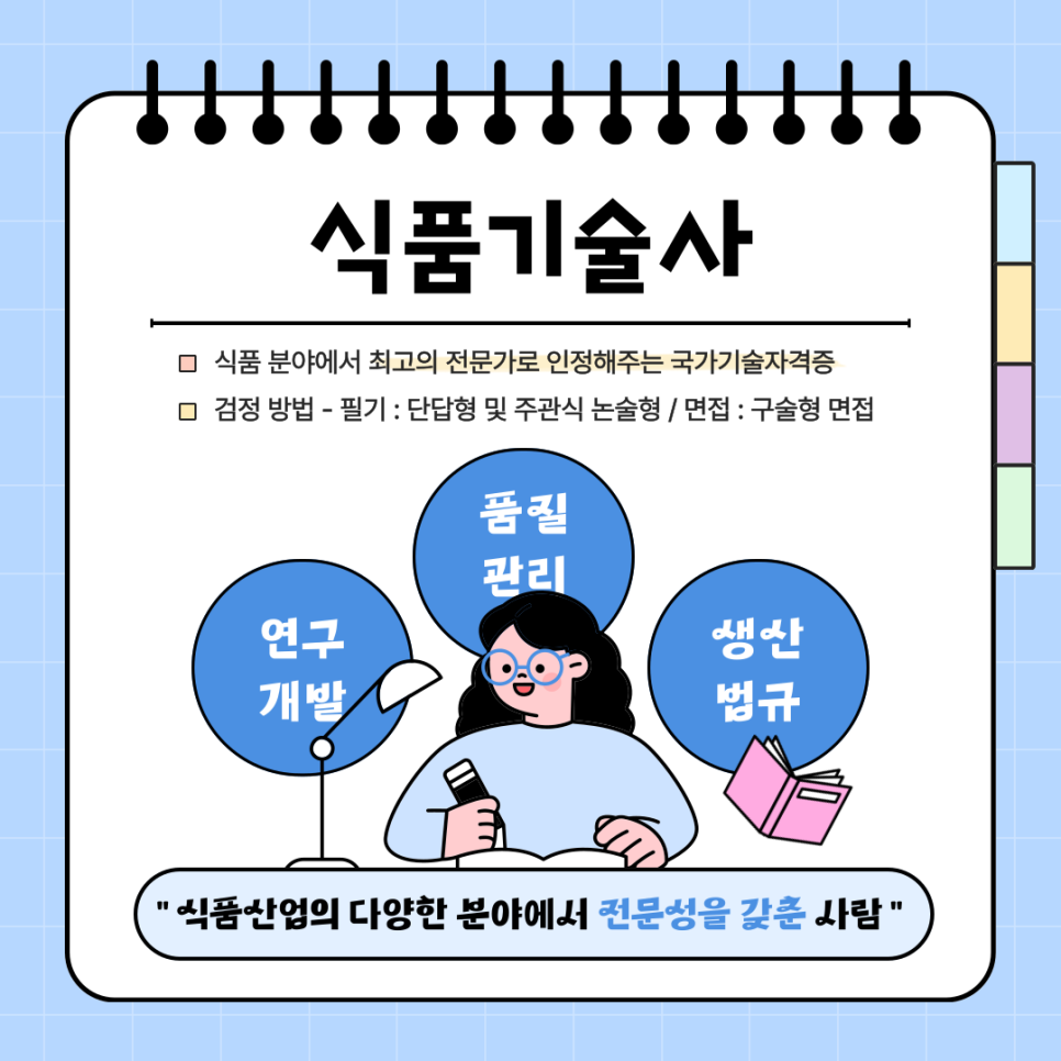 식품기술사 자격증은 식품 분야에서 최고의 전문가로 인정해 주는 국가기술자격증으로