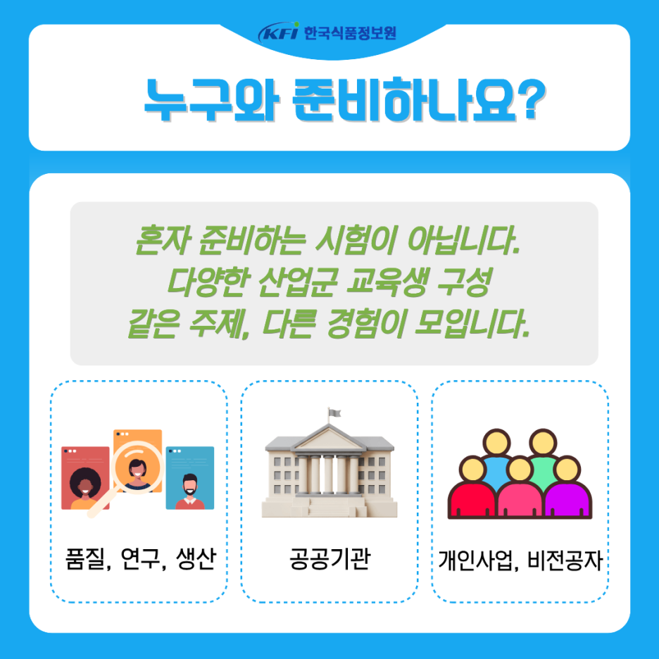 식품업체 품질·연구·생산 실무자, 공공기관 종사자, 개인사업자와 비전공자까지.