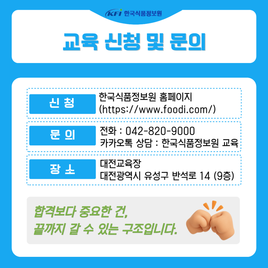 한국식품정보원 대전교육장에서 함께하겠습니다.