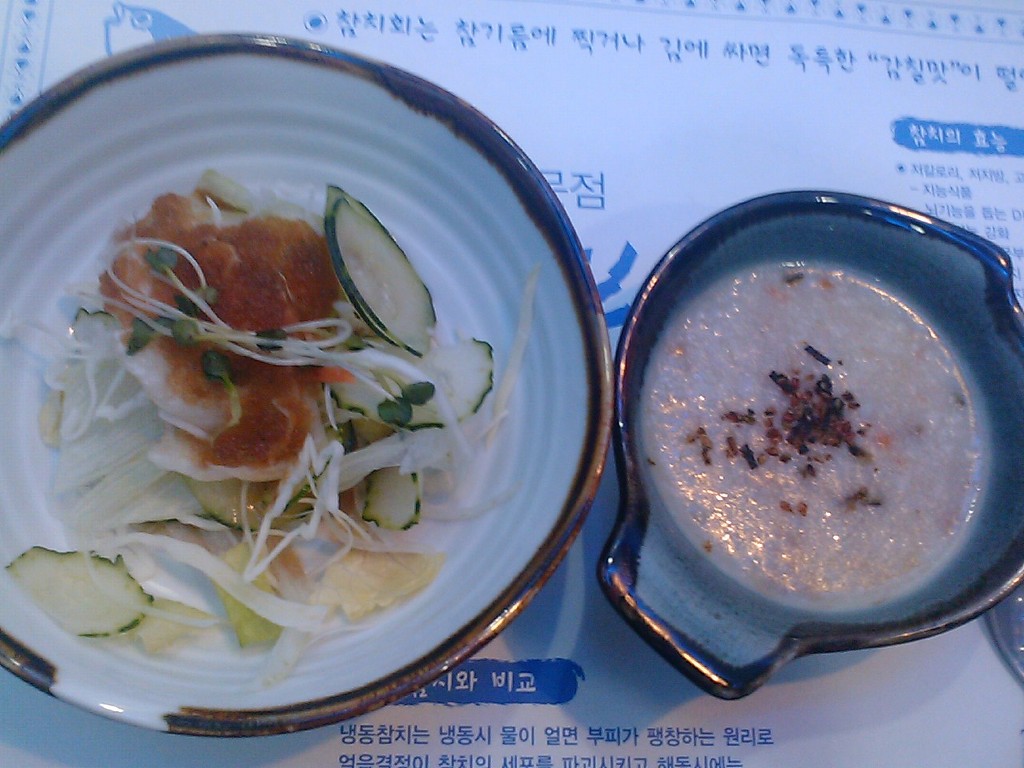<에피타이저로 제공되는 참치죽과 샐러드입니다. 개인적으로 샐러드는 한 입 먹고 안먹었습니다. 참치죽은 더 달라고 할 정도로 맛있더군요.>