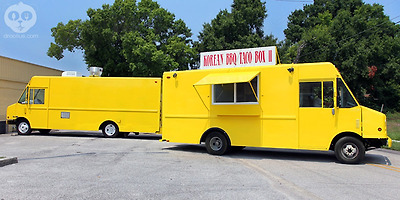 Painted in the Korean BBQ Taco Box signature yellow, the new truck is a larger truck with a more spacious kitchen than the original KBBQ Box #1.