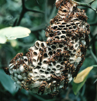 4. 몇몇종은 타액과 외부물질을 사용하여 둥지건설->Vespidae 말벌