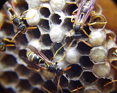 Wasp중 Vespidae 말벌은 말벌, 쌍살벌, 호리병벌류를 포함합니다. 이중 말벌류(Vespinae)와 쌍살벌류(Polistinae)는 사회성 말벌이며 나무펄프로 둥지를 만듭니다. 이들은 단독생활 말벌류와는 달리 어미벌이 불임성 딸들과 같이 한둥지에서 생활을 영위하는 특징이 있습니다. 봄철에 겨울잠에서 깨어난 사회성 Vespidae 말벌 여왕벌들은 전부 혼자서 둥지를 시작해서 나중에 일벌들과 함께 번성해 나갑니다.