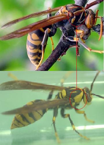 쌍살벌(좌측)과 말벌(우측)의 형태차이