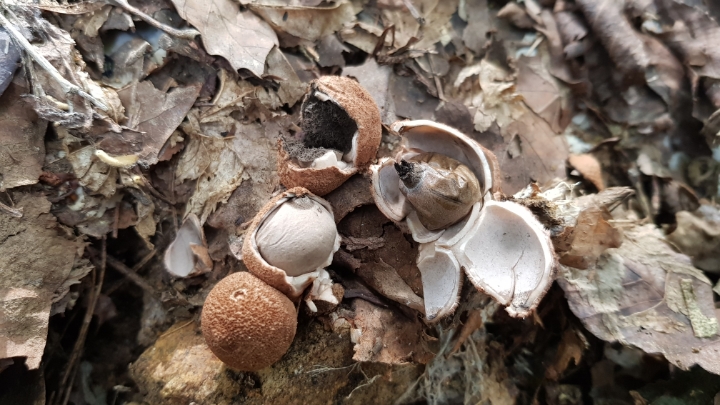 연약한 유균을 누군가에게 먹히지 않도록 작은 원형구로 내부를 잘 감싸 놓은 '목도리방귀버섯'의 생존전략으로 보인다.