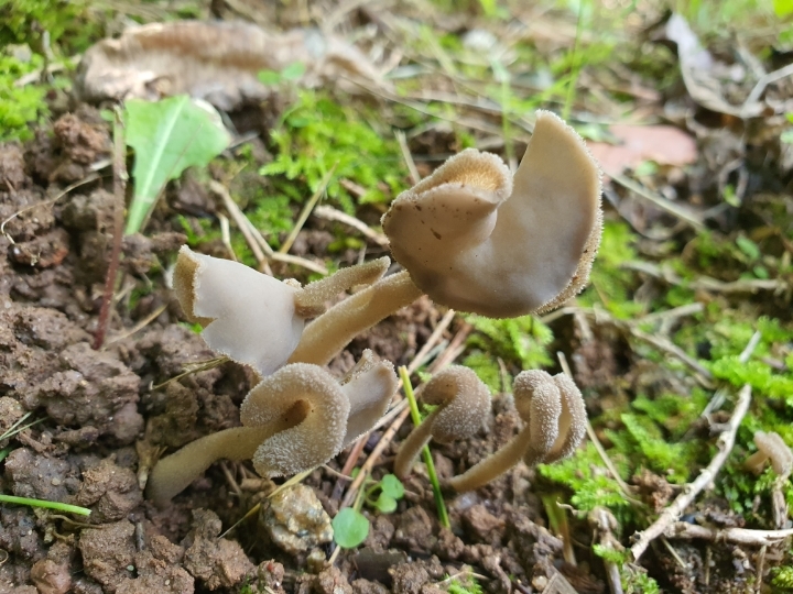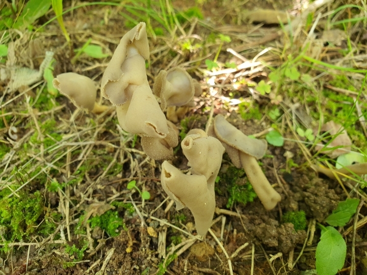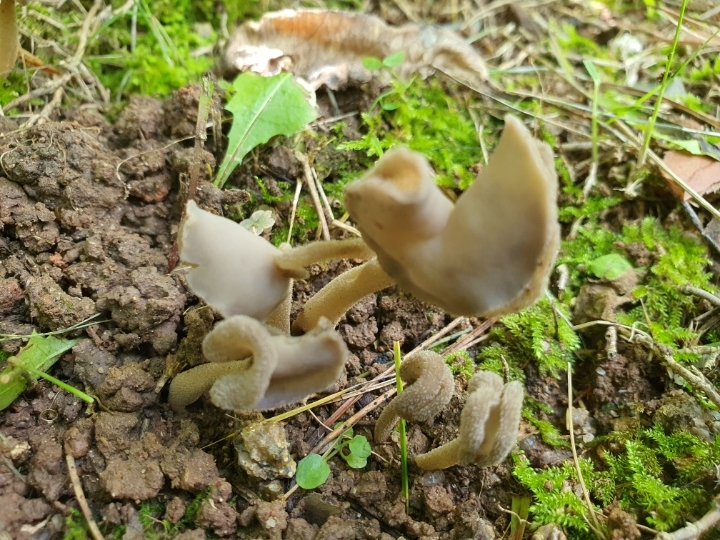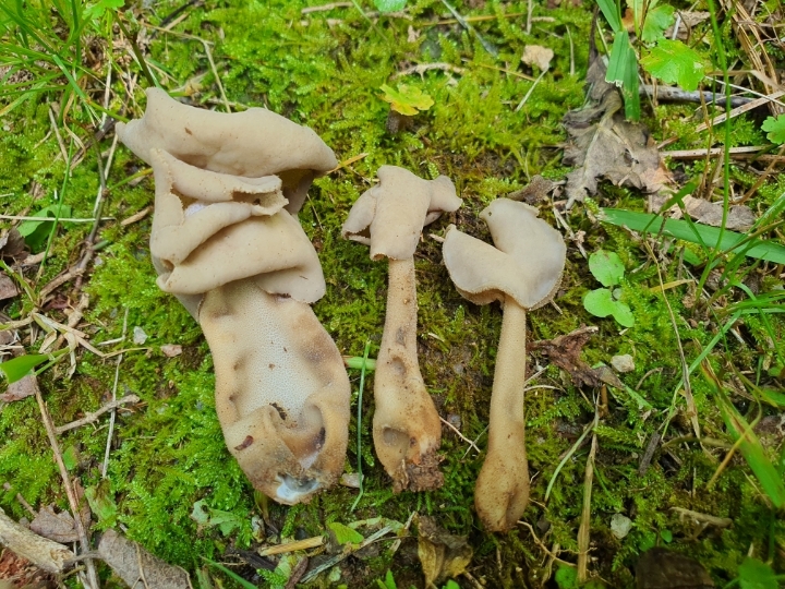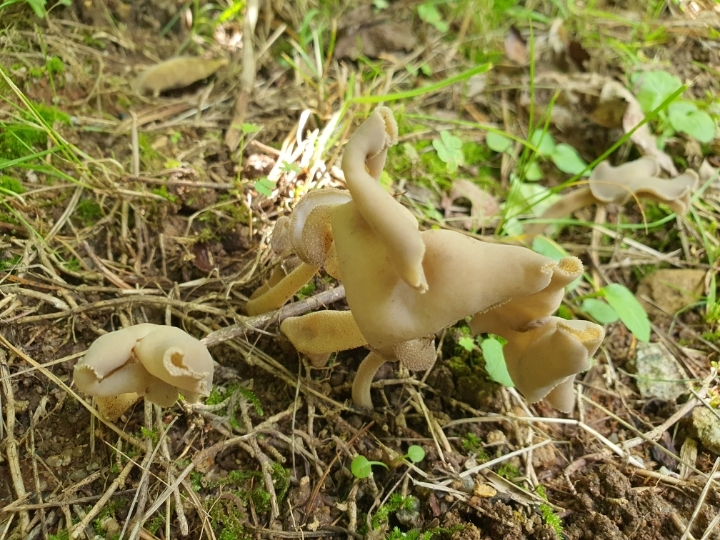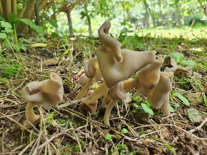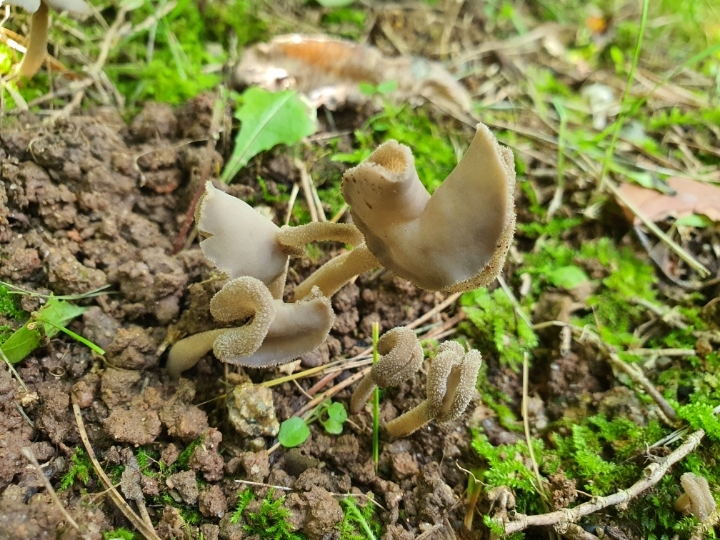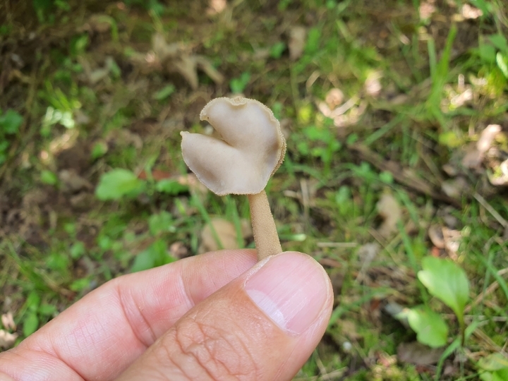 자실체 형태는 처음에는 주발형이나 후에 안장형으로 되고, 갓 끝은 자루에서 떨어진다.