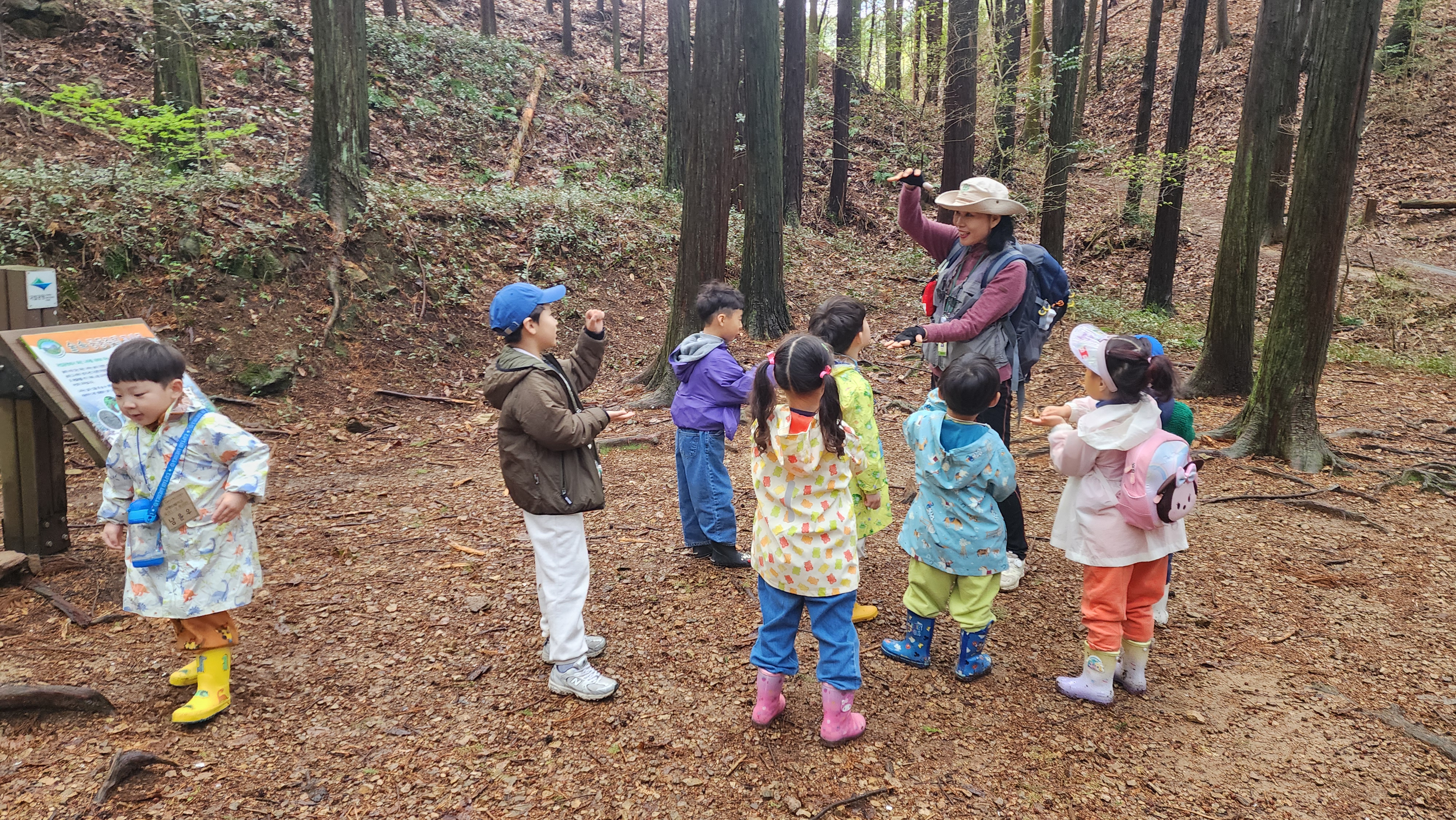 살랑살랑 봄바람을 타고 친구들을 만나러 온 '토리선생님'과의 첫 만남! 처음이라 조금은 어색할 법도 한데, 서로 마주 보며 건네는 '안녕'인사와 숲에서의 안전 약속을 배우며 우리는 금세 숲속 친구가 되어 기지개를 쭉 펴고 본격적으로 숲 탐험을 시작했어요.