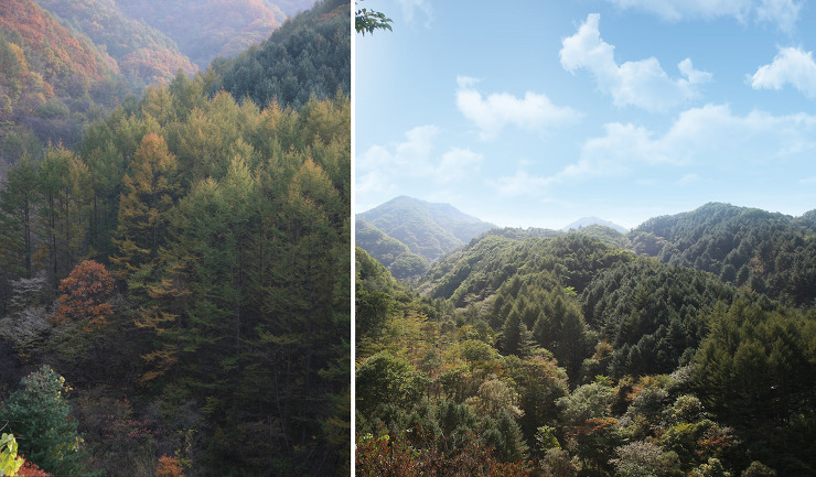 앞산은 산음자연휴양림속 산책로와 뒷산 아름다운 산책로가 펜션과
