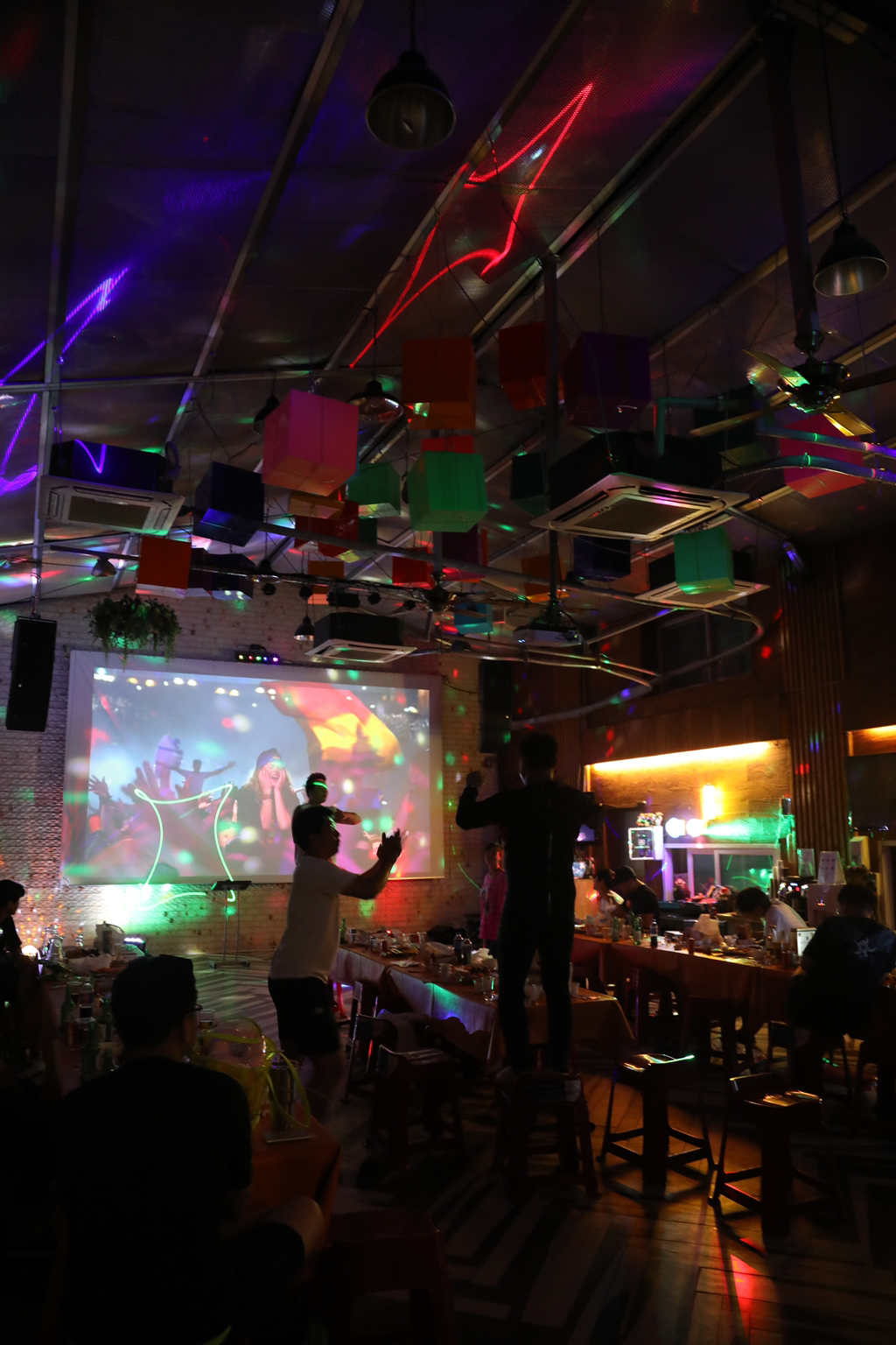 대형 스크린이 노래방 화면이되고 화려한 조명이 분위기를 고조시키면 그동안 감추워져 있던 끼가 발동하게 된다. 단체워크샵 펜션 여행시 빠지지 않는 노래방 대결 이정도는 해줘야 진정한 회사 워크숍 노래방 이라 할 수 있다.