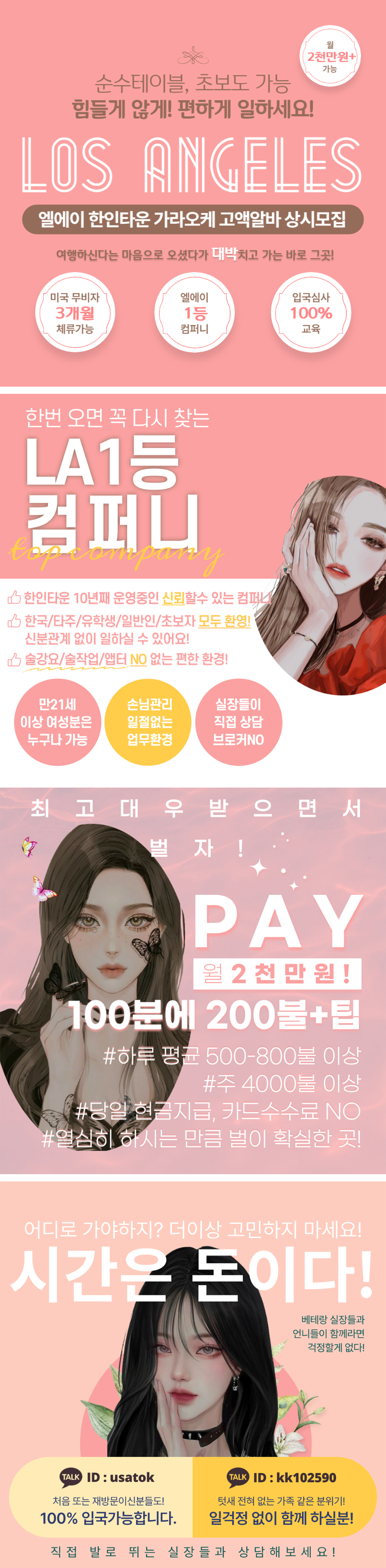 한인타운 15곳이 넘는 노래방에서 일합니다.