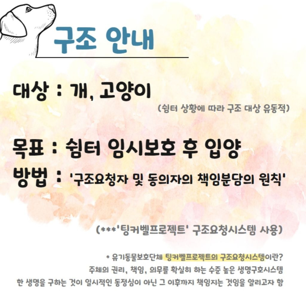 소형견 구조 관련, 쉼터 자체 기준이 있습니다.