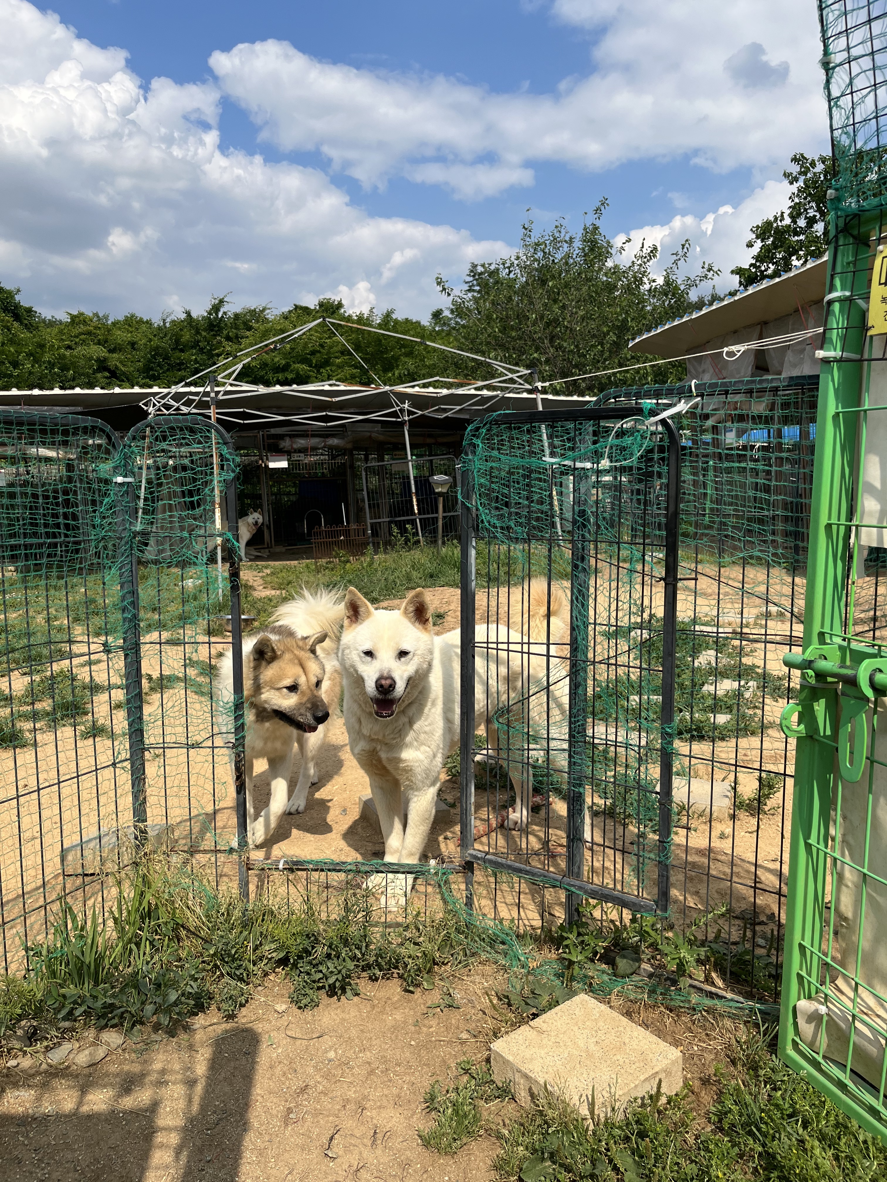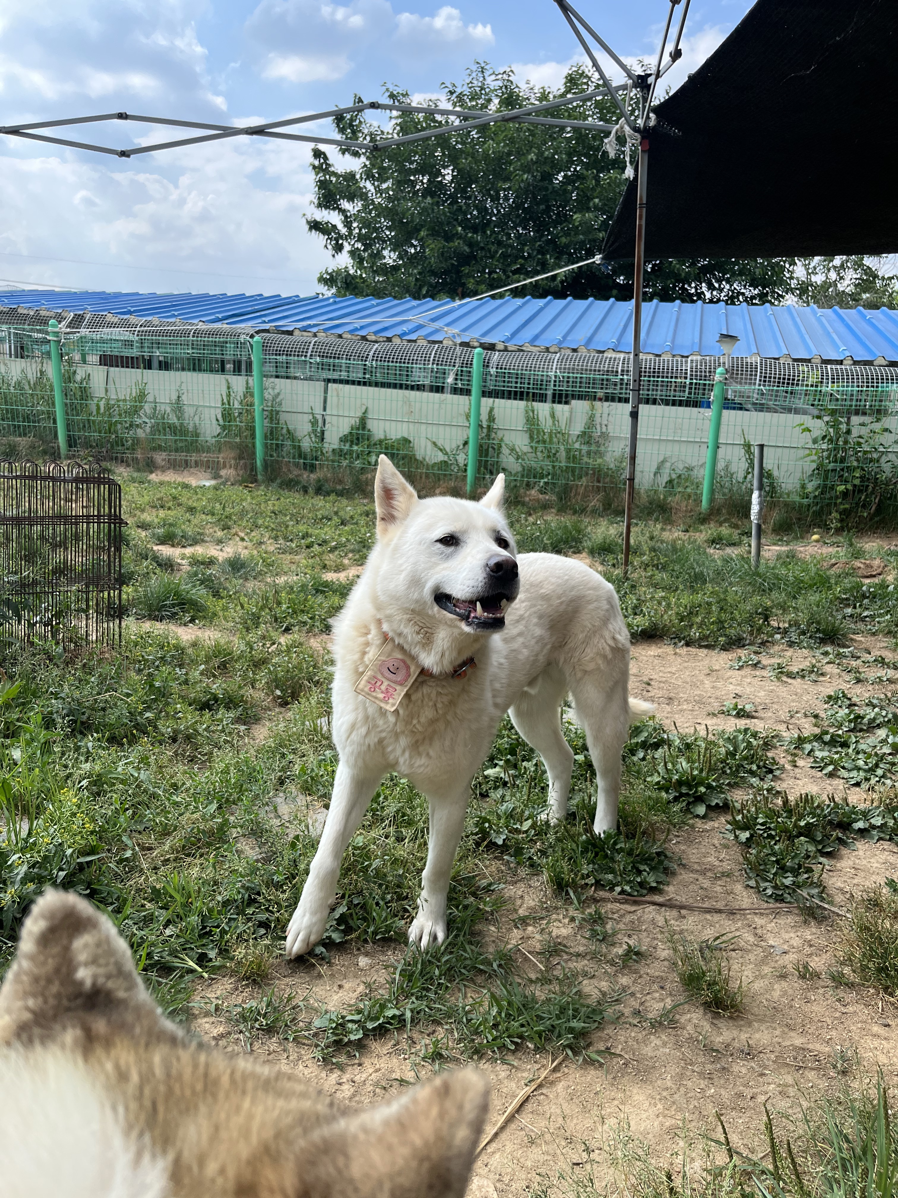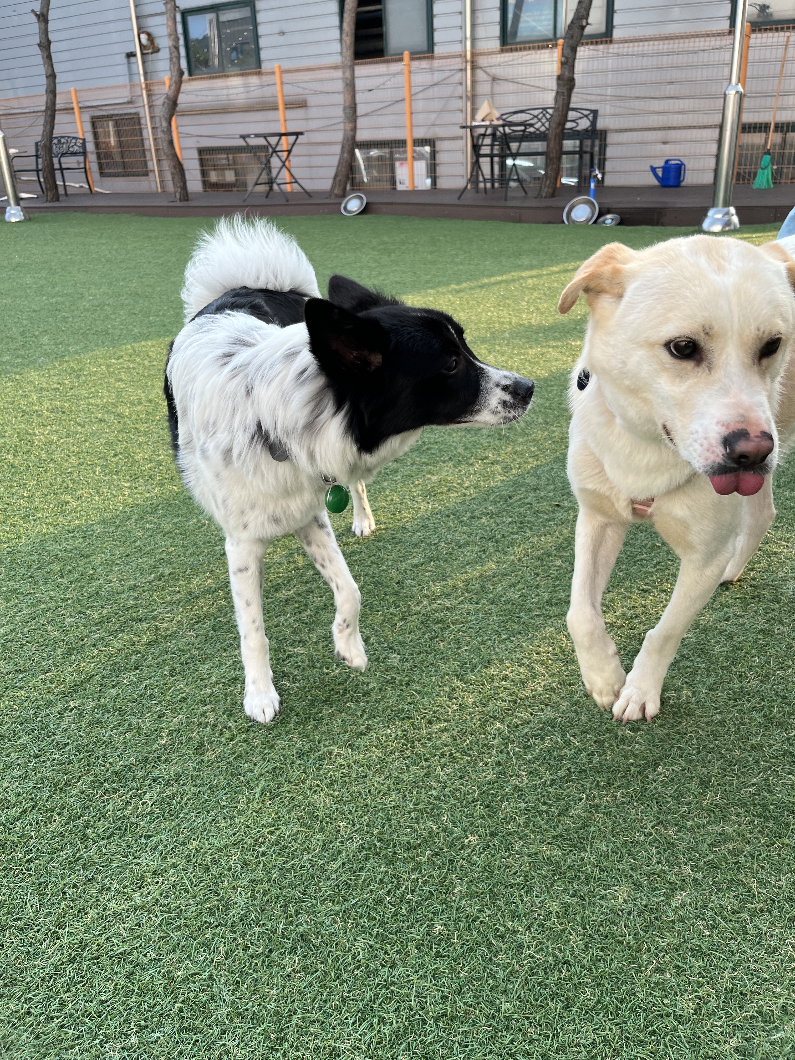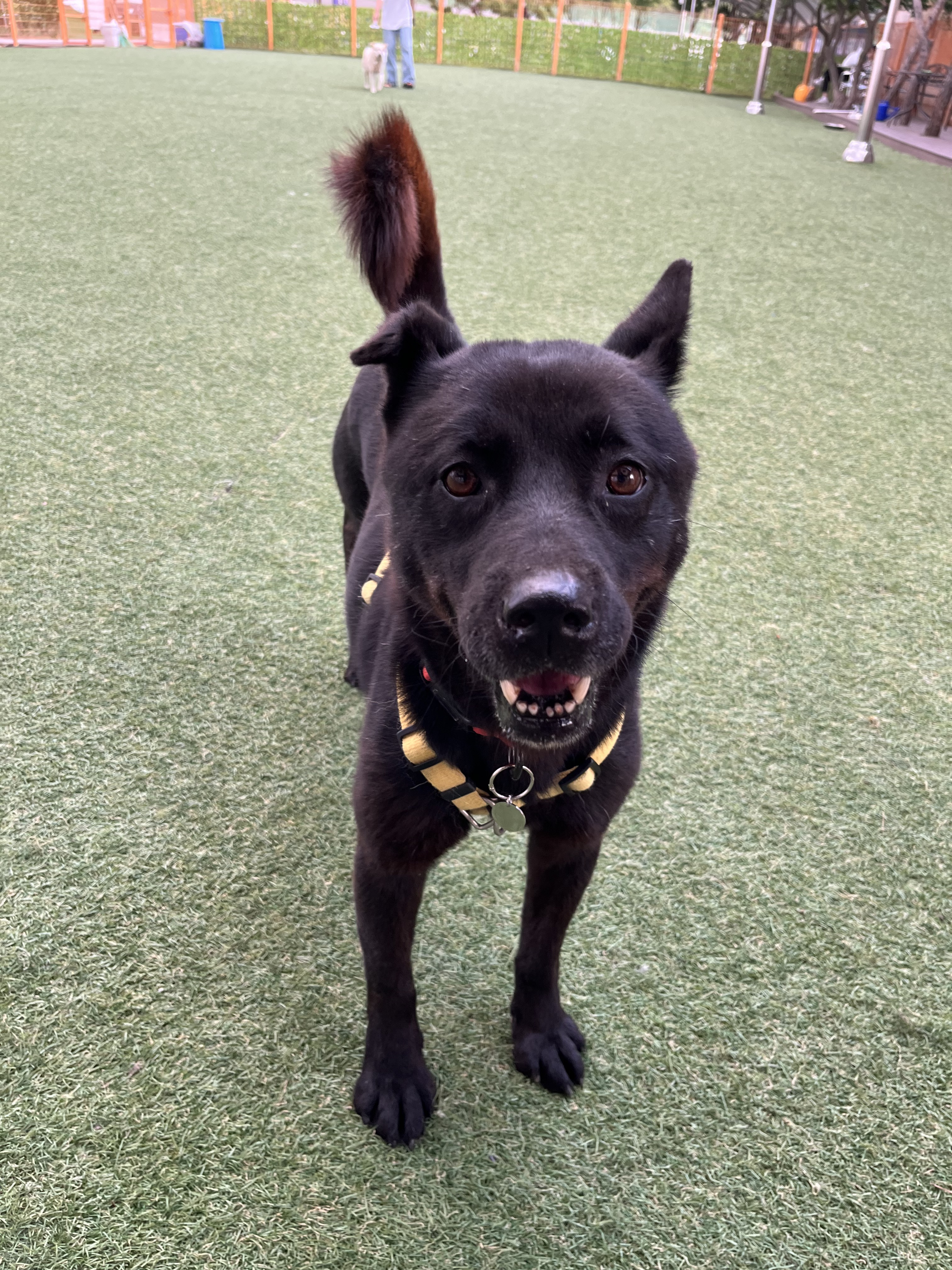 •루디 : 은근 낯을 가리는 것 같아요. 긴장 했는지 설사도 하구요 ㅠㅠ 예전에 루디 목욕 후 동네 공원에 갔을때는 이런 느낌을 전혀 못받았어서 ( 그때는 막 뛰어다녔는데 ) 좀 의아했어요. 😂 다른 강아지들이랑 잘 놀아요. 시간이 흐른 뒤에는 적응을 했는지 보호소에서 하던것처럼 까미와 놀려고 해요~ 여기서도 새로운 사람에게 한번씩은 다가가는 친화력 ㅎㅎ