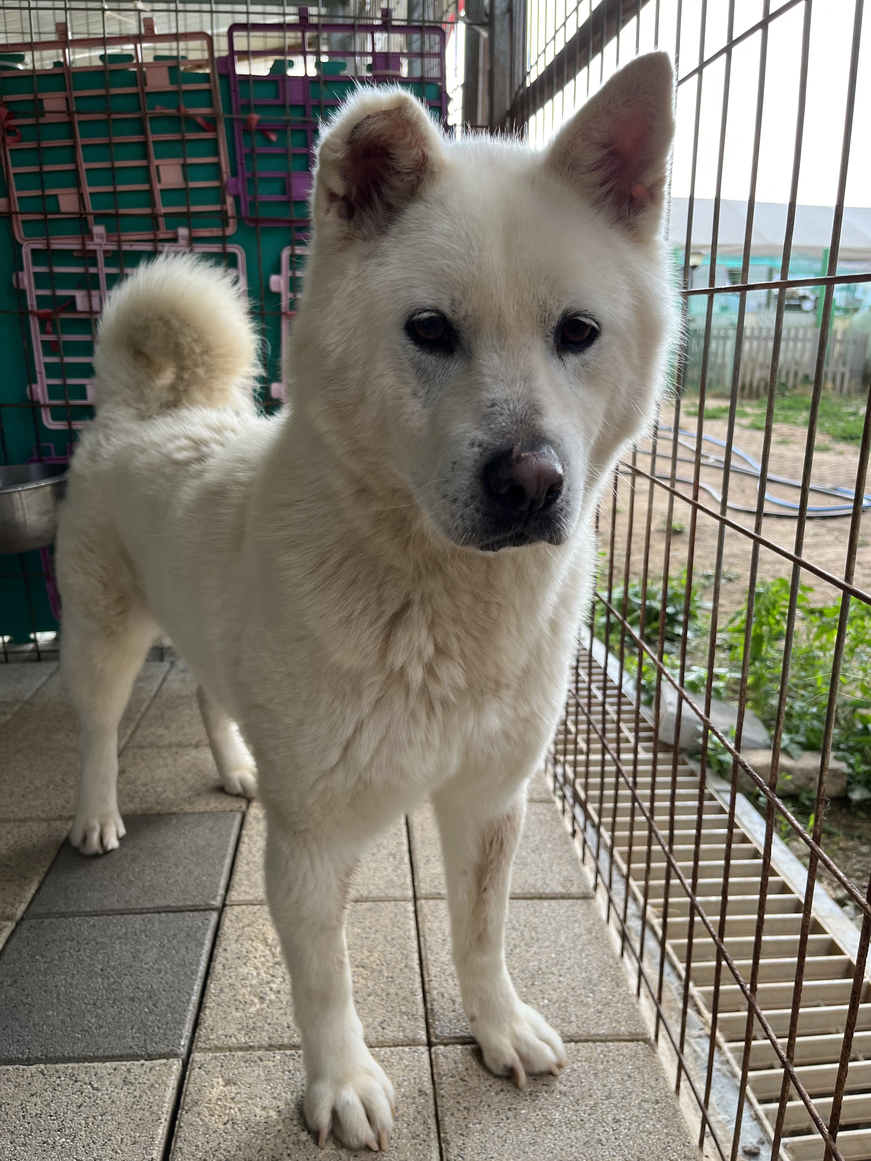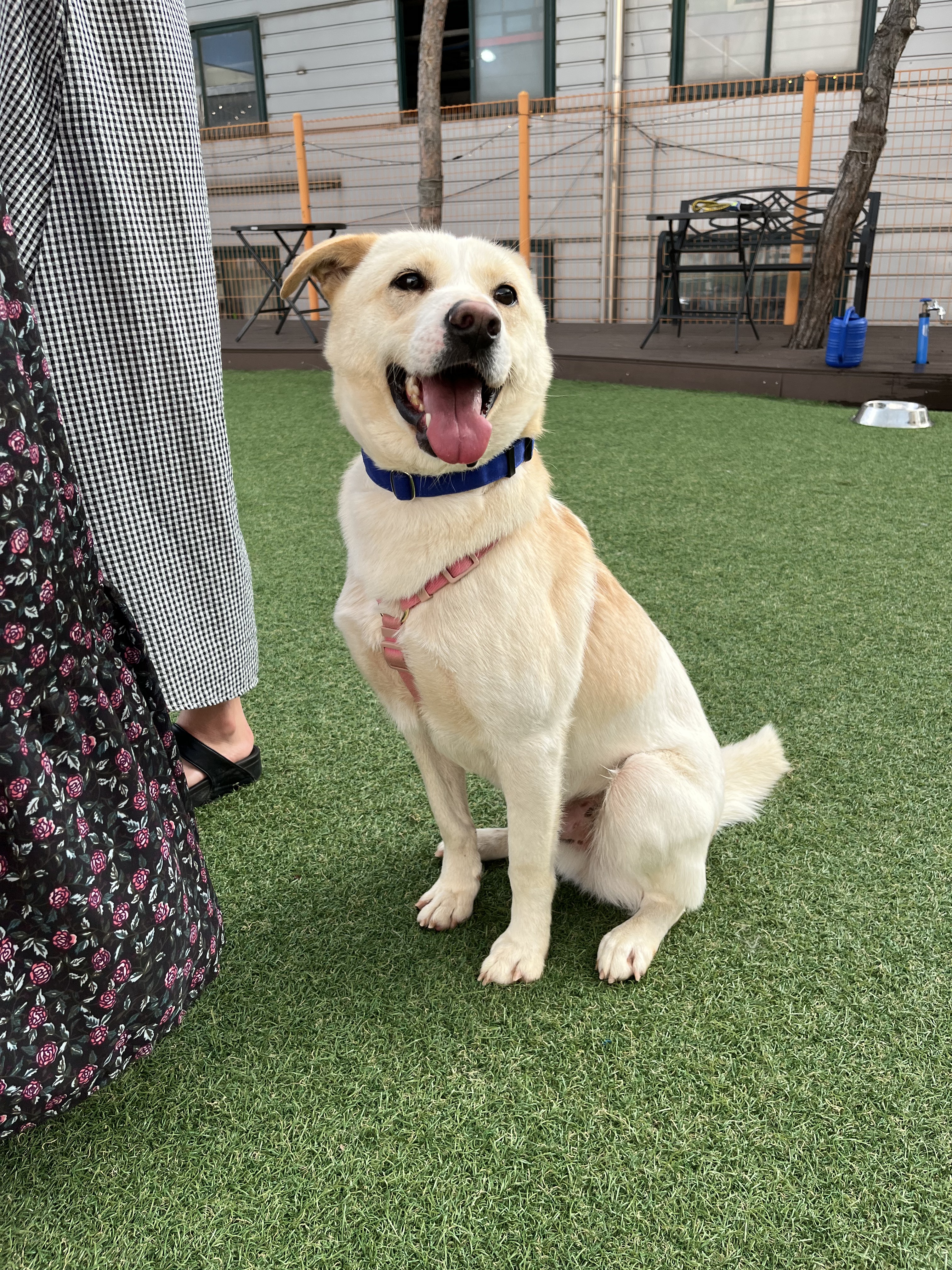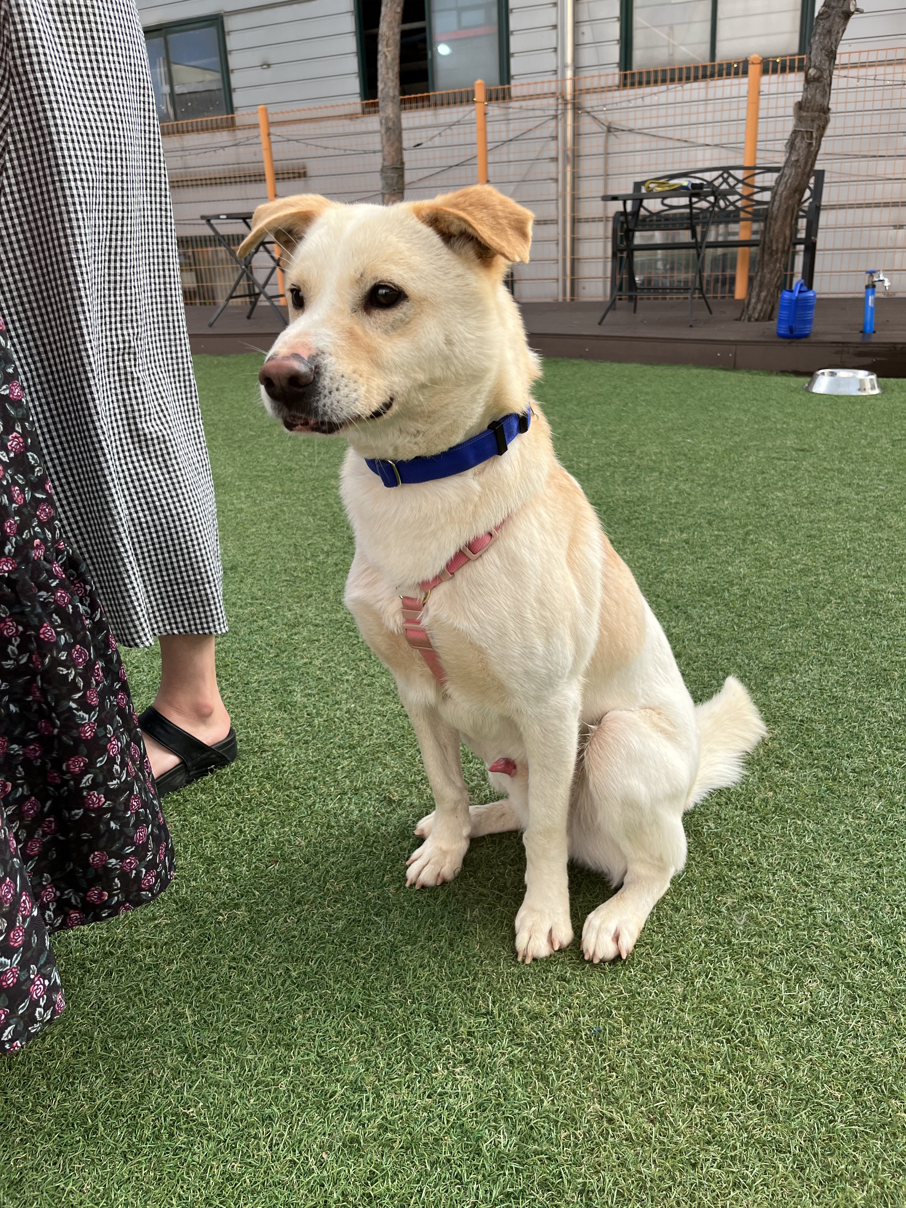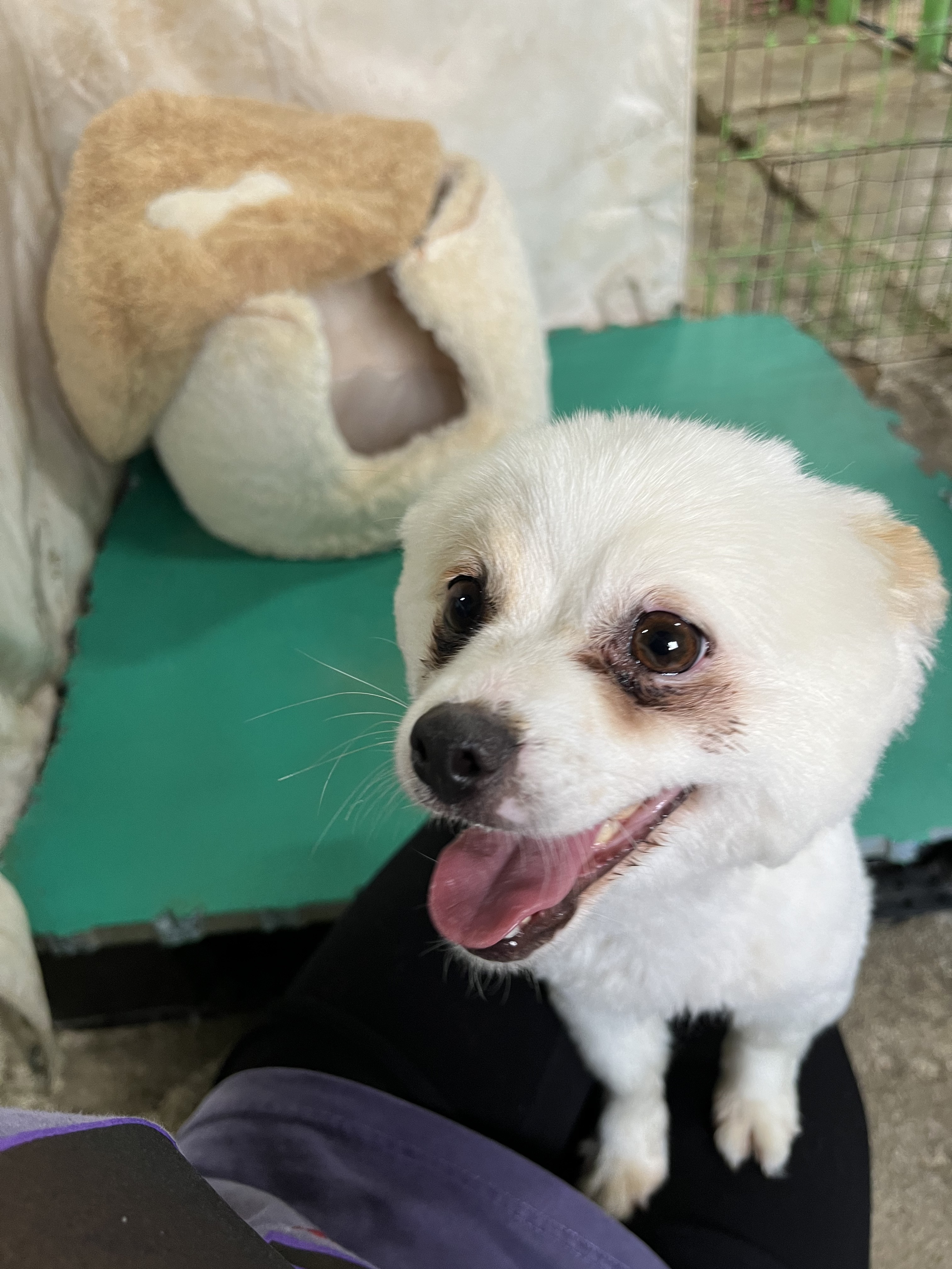 •루이 : 낯선 장소에서 사람에게 의지하지는 않아요. 운동장에 가서도 여전히 저희가 쫓아가면 피했어요. 그래도 잡아다가 빗질하거나 만지면 참아주기는 해요. 다른 강아지들 오면 너무 너무 좋아하면서 꼬리 흔들며 다가갔어요 ! 뛰어놀았으면 좋겠어서 제가 막 쫓아가니까 도망가다가 넘 무서운지 주저앉아버렸어요 ㅠㅠ ( 미안하다 😭)