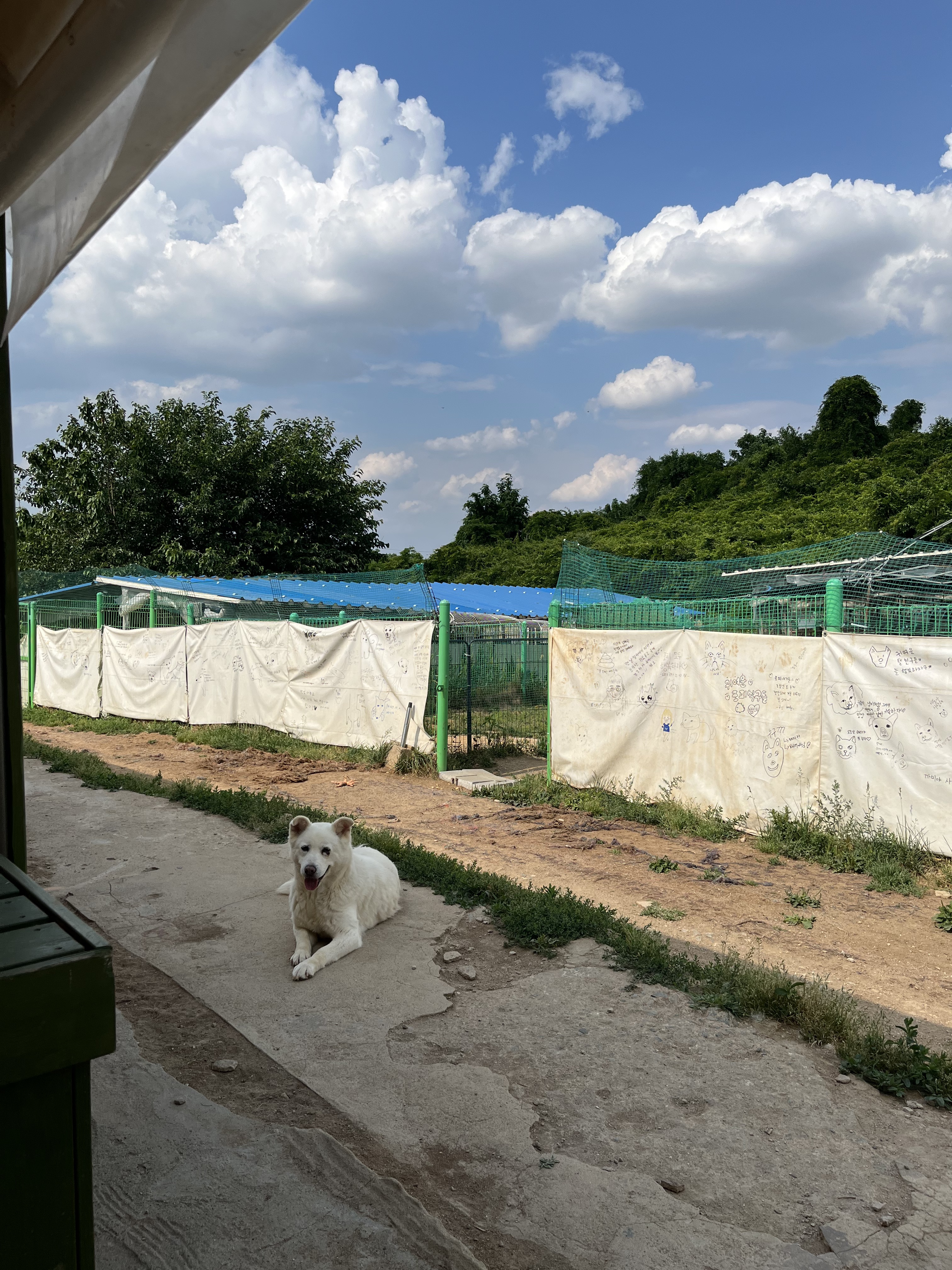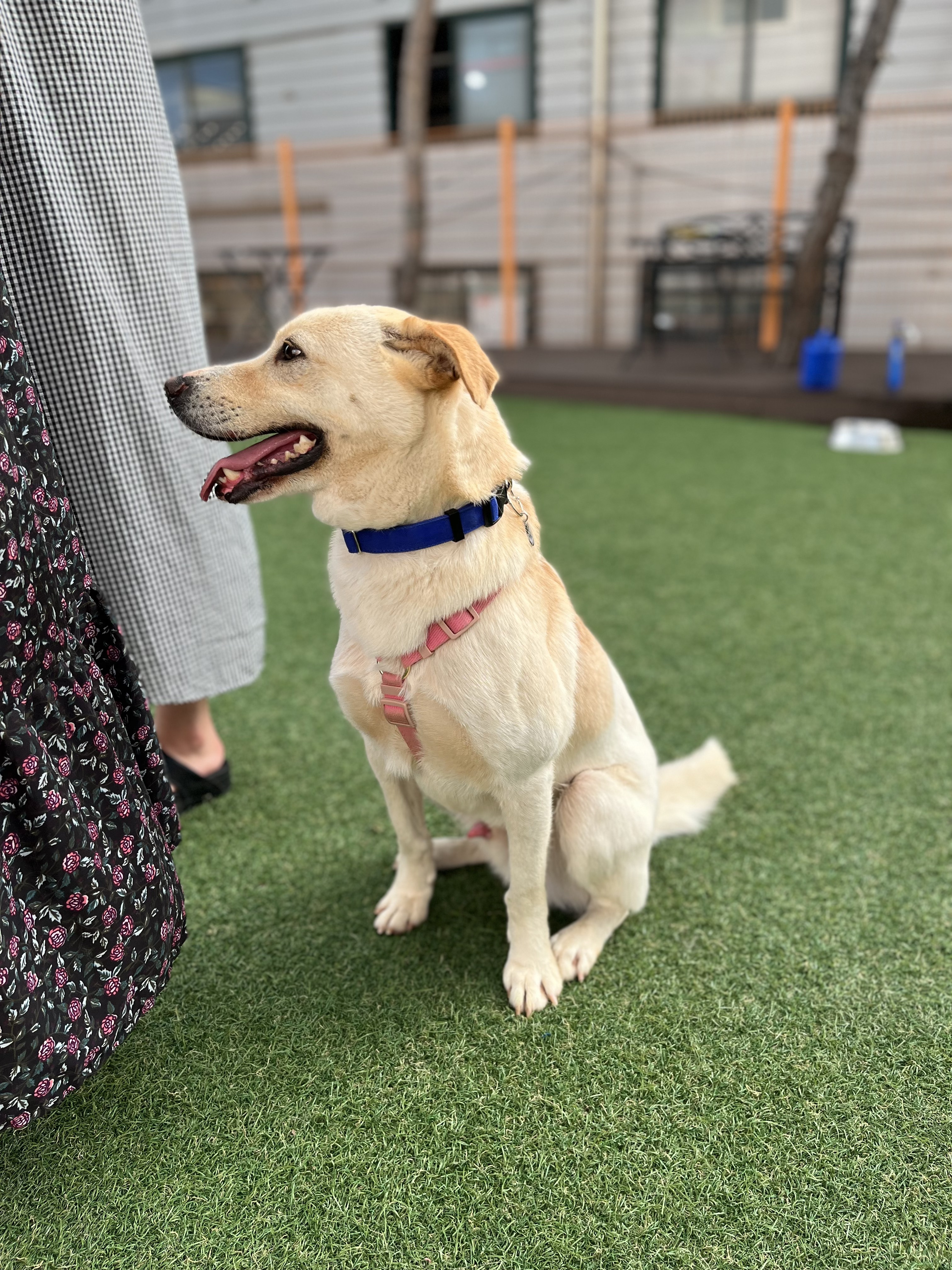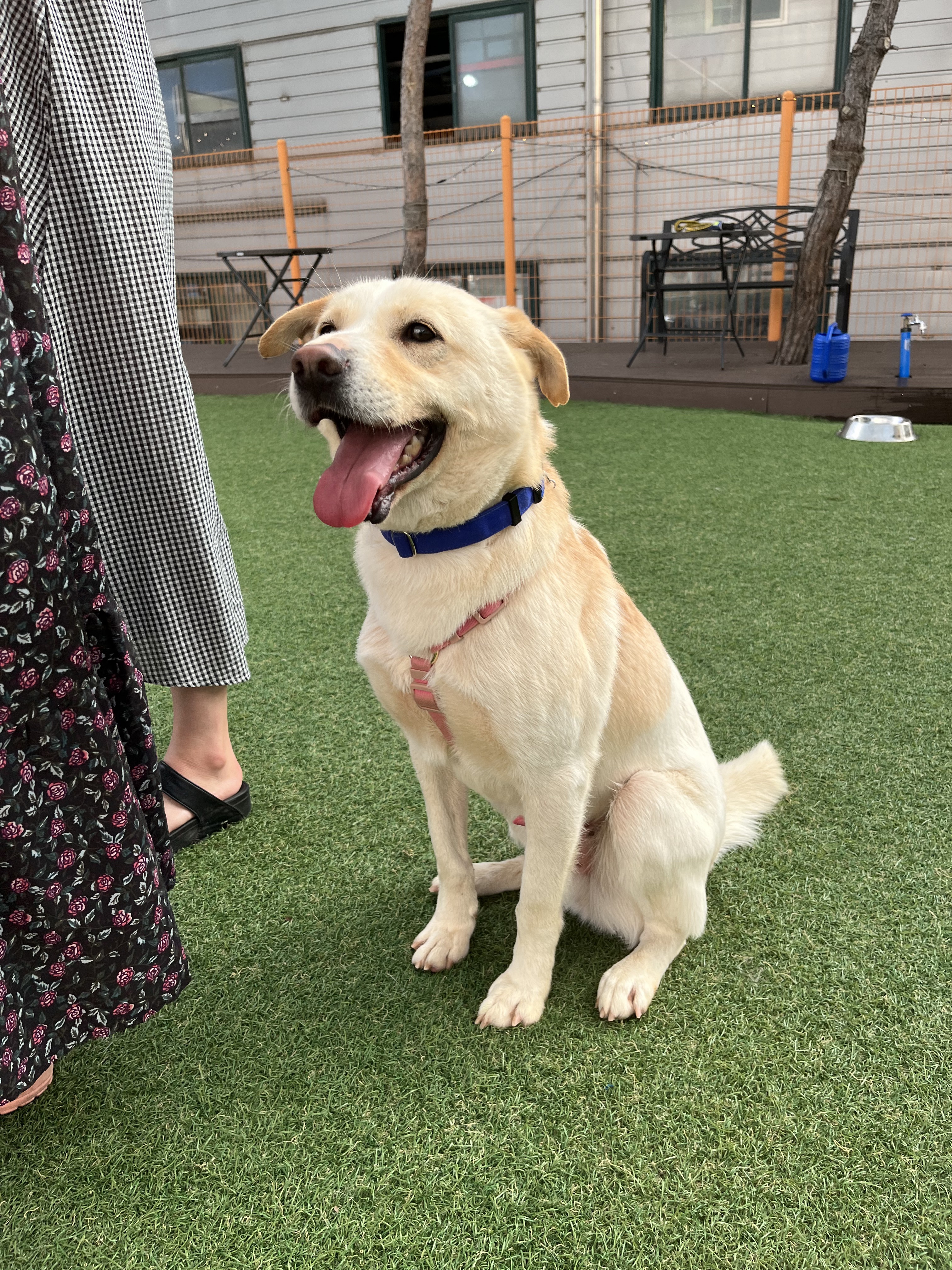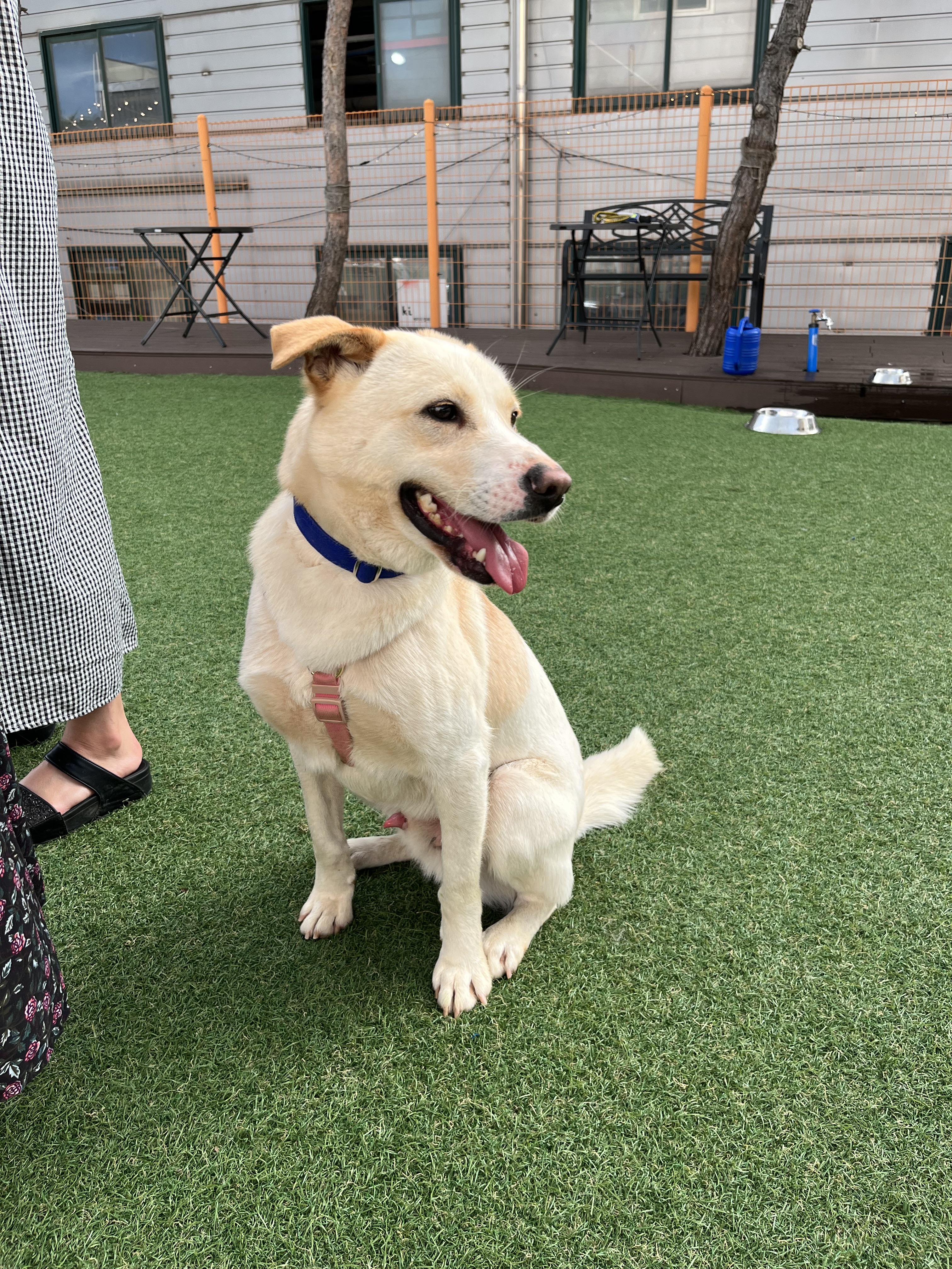 •루이 : 낯선 장소에서 사람에게 의지하지는 않아요. 운동장에 가서도 여전히 저희가 쫓아가면 피했어요. 그래도 잡아다가 빗질하거나 만지면 참아주기는 해요. 다른 강아지들 오면 너무 너무 좋아하면서 꼬리 흔들며 다가갔어요 ! 뛰어놀았으면 좋겠어서 제가 막 쫓아가니까 도망가다가 넘 무서운지 주저앉아버렸어요 ㅠㅠ ( 미안하다 😭)
