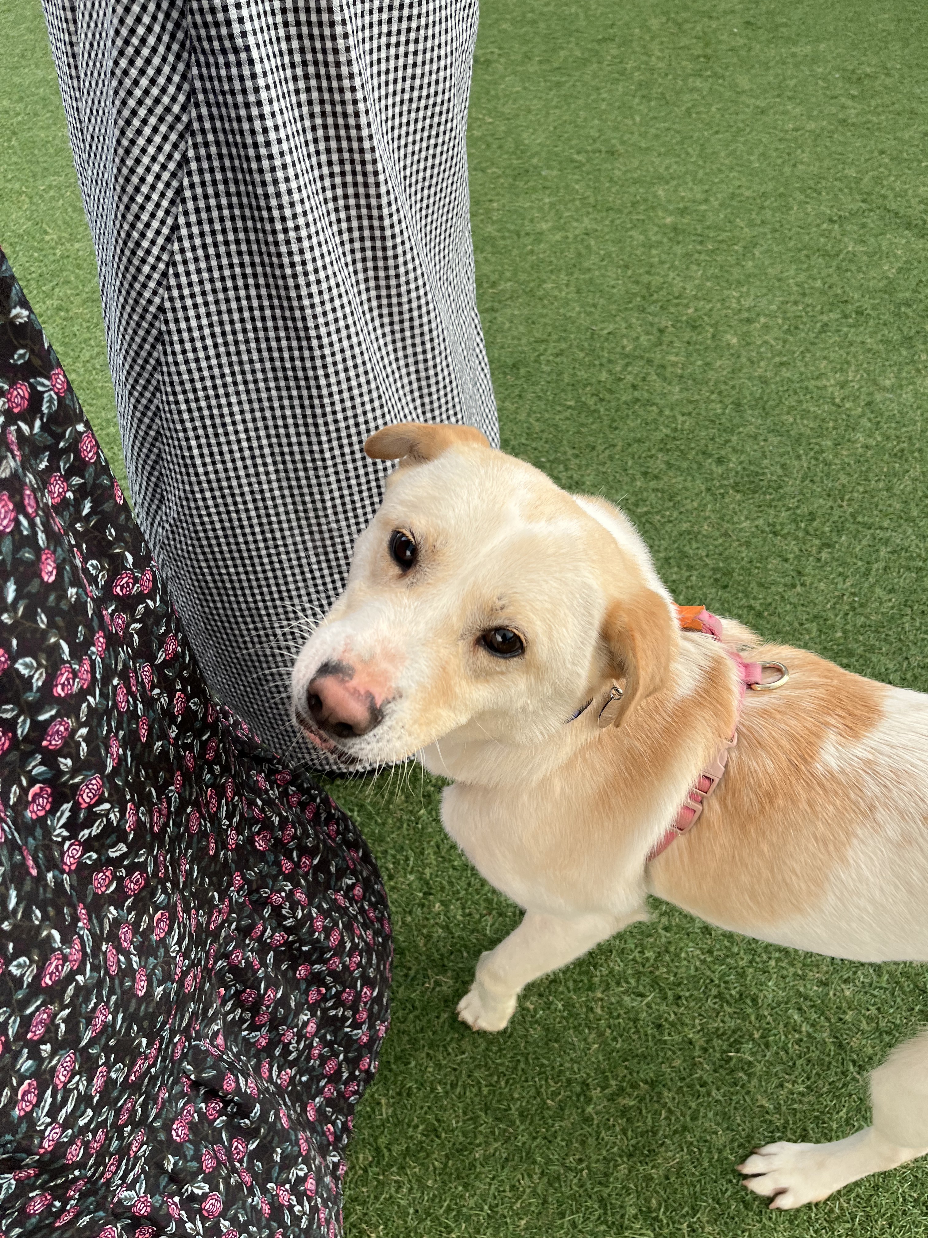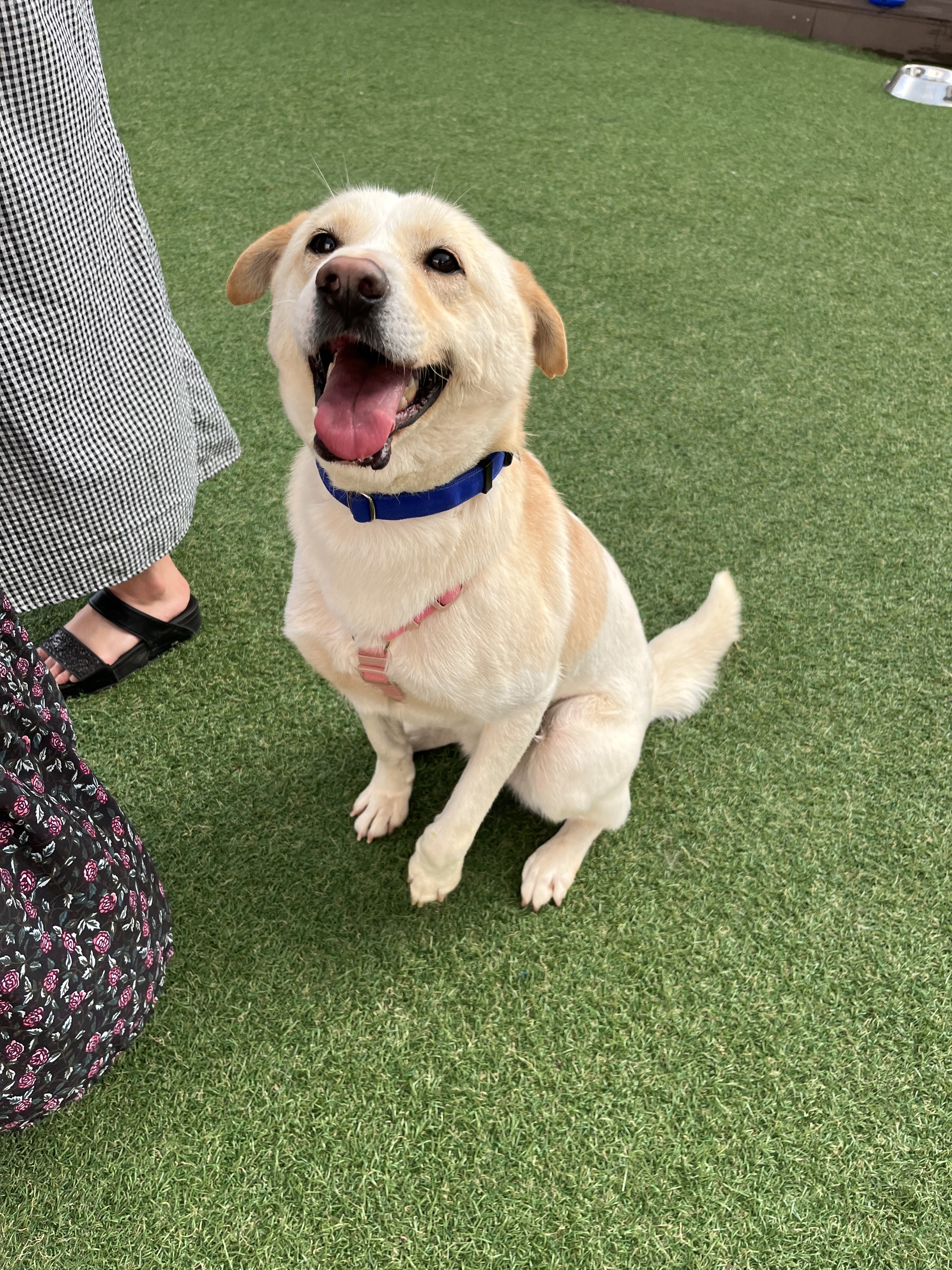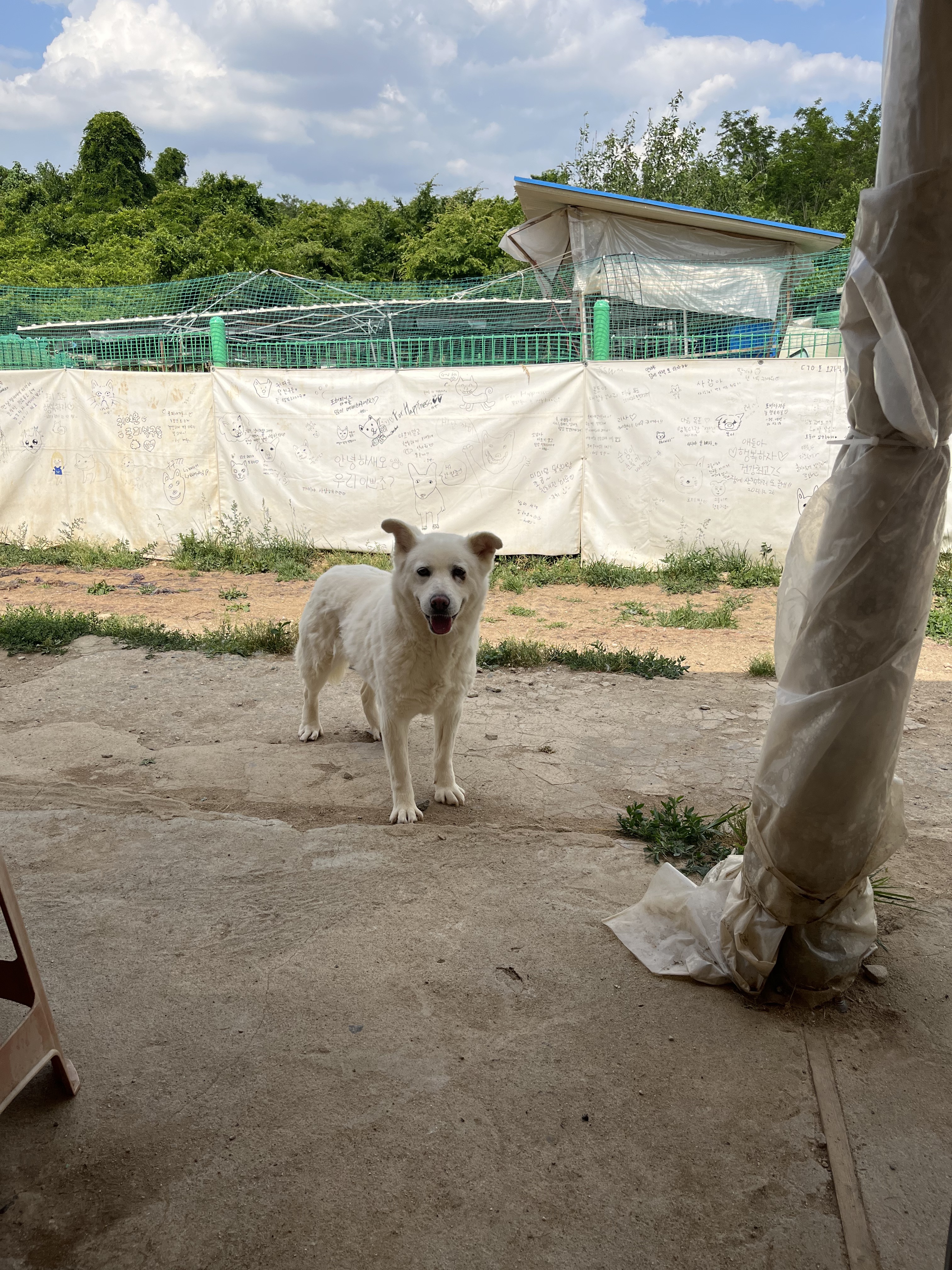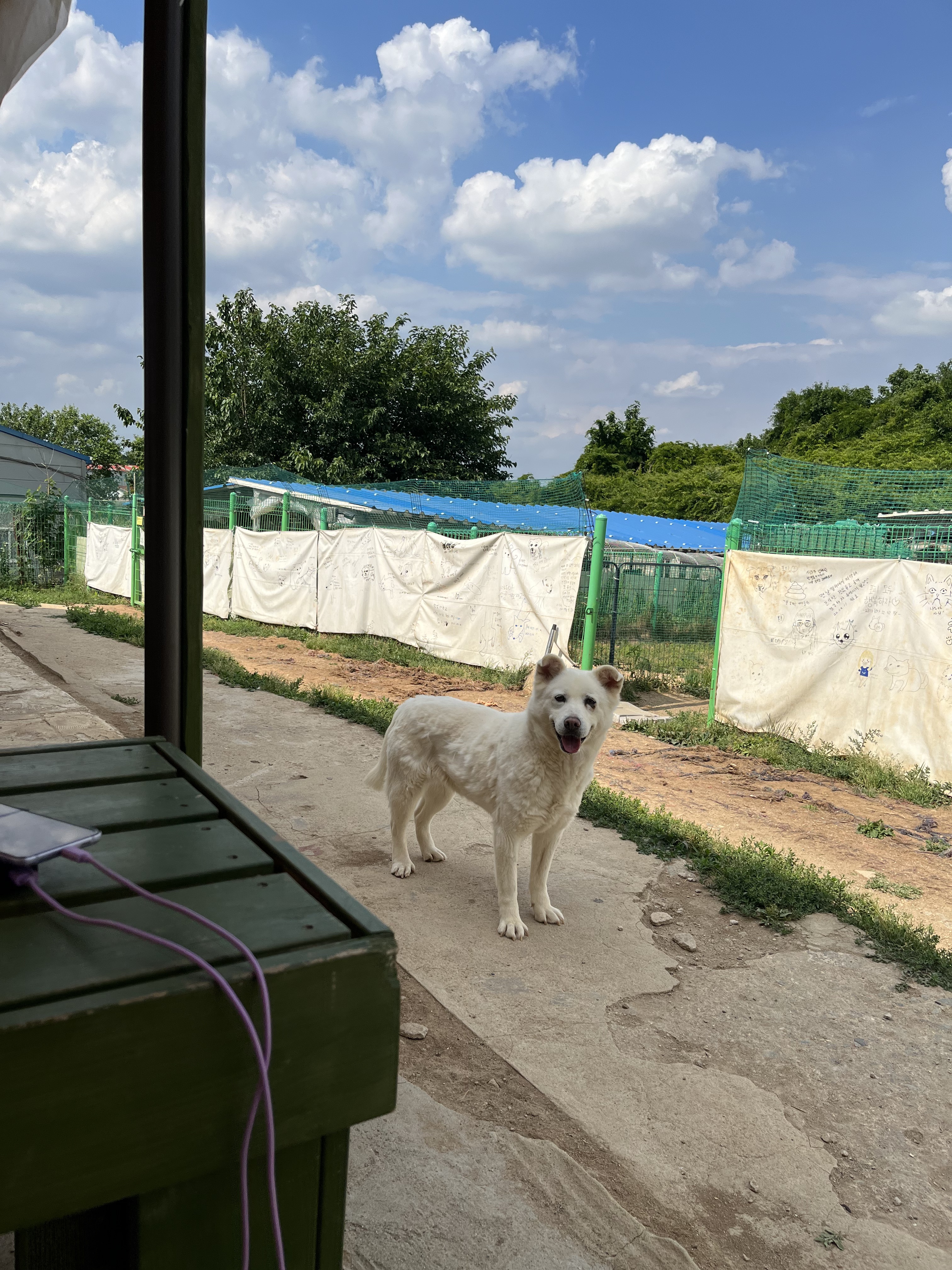 •루이 : 낯선 장소에서 사람에게 의지하지는 않아요. 운동장에 가서도 여전히 저희가 쫓아가면 피했어요. 그래도 잡아다가 빗질하거나 만지면 참아주기는 해요. 다른 강아지들 오면 너무 너무 좋아하면서 꼬리 흔들며 다가갔어요 ! 뛰어놀았으면 좋겠어서 제가 막 쫓아가니까 도망가다가 넘 무서운지 주저앉아버렸어요 ㅠㅠ ( 미안하다 😭)