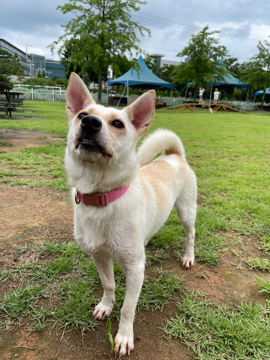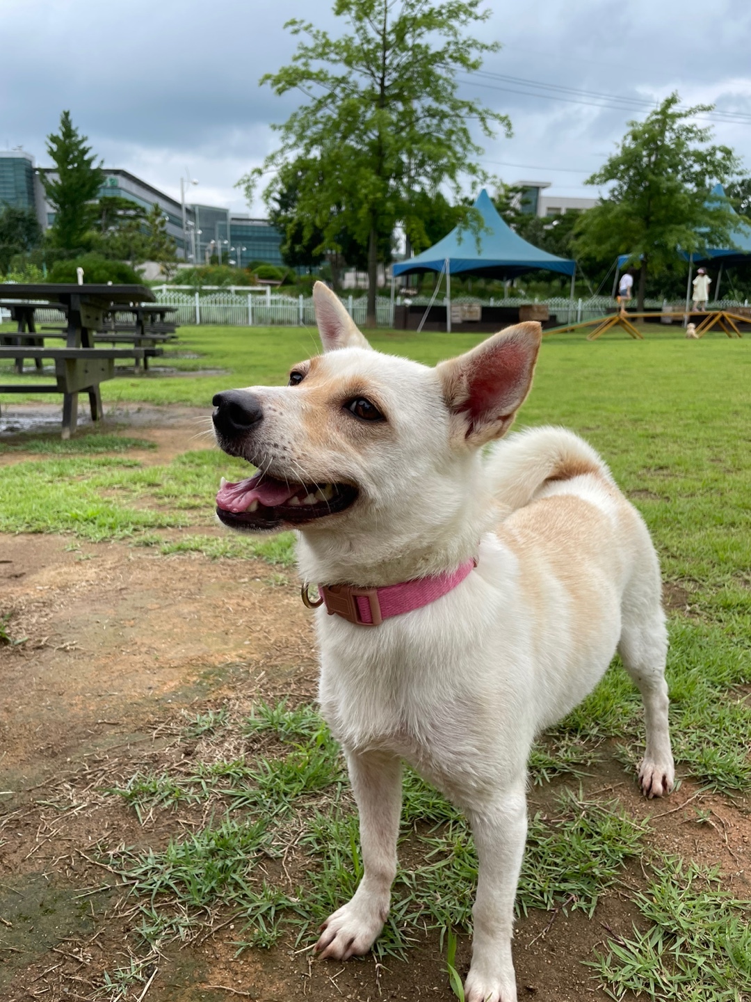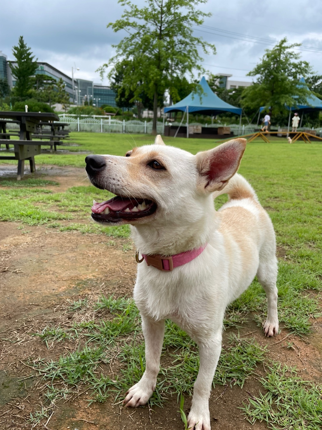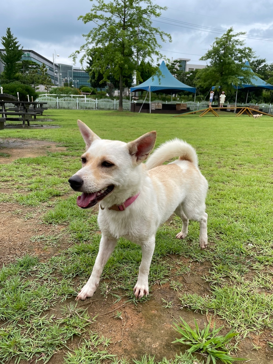 낯선 강아지에게도 젠틀하게 인사도 나누고 잘 뛰어다니더라구요!