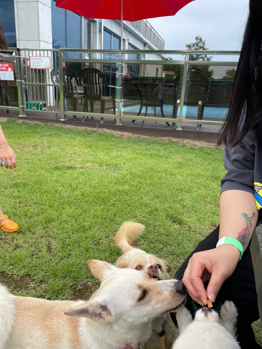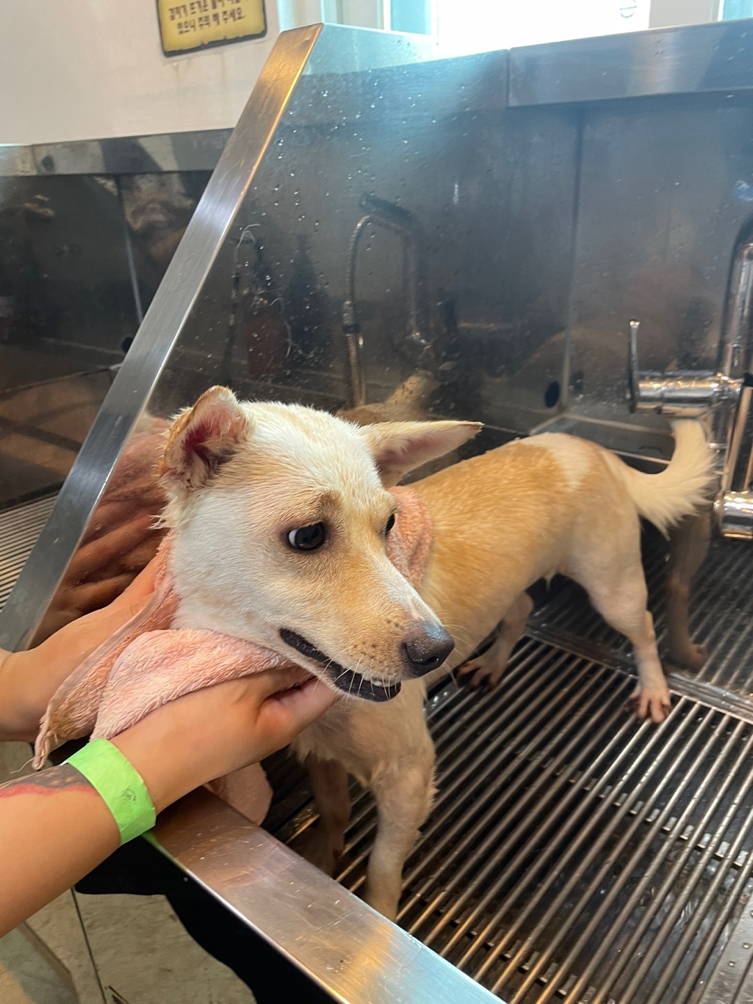 털을 말리는 건 드라이기룸을 사용했는데 아는 사람이 앞에서 지켜만 봐주고 있으면 무난하게 안에서 잘 있더라구요