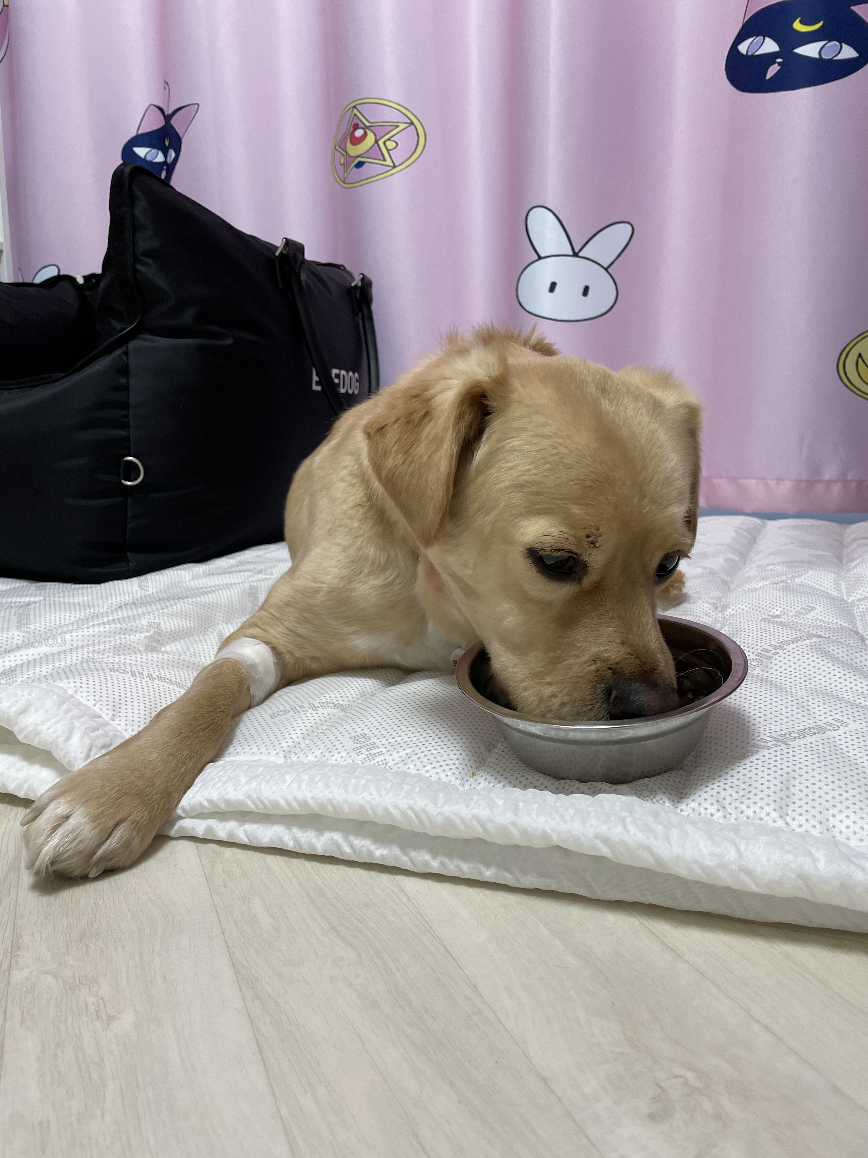 볼트는 어제 저녁에 퇴원해서 저희집에 왔어요!