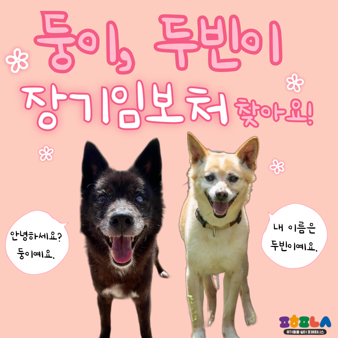 이번 무더운 여름을 임보처에서 보내고 다시 쉼터로 복귀한 둥이, 두빈이의 장기임보처를 찾습니다!