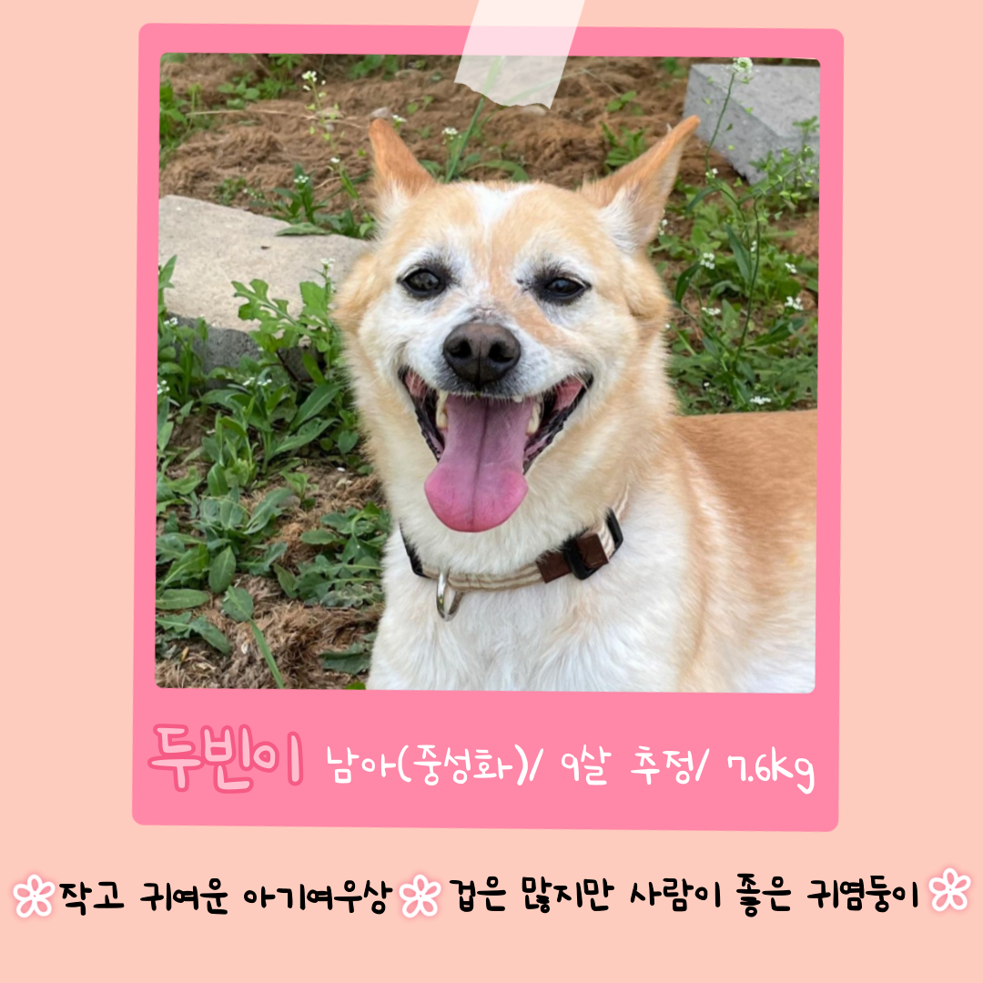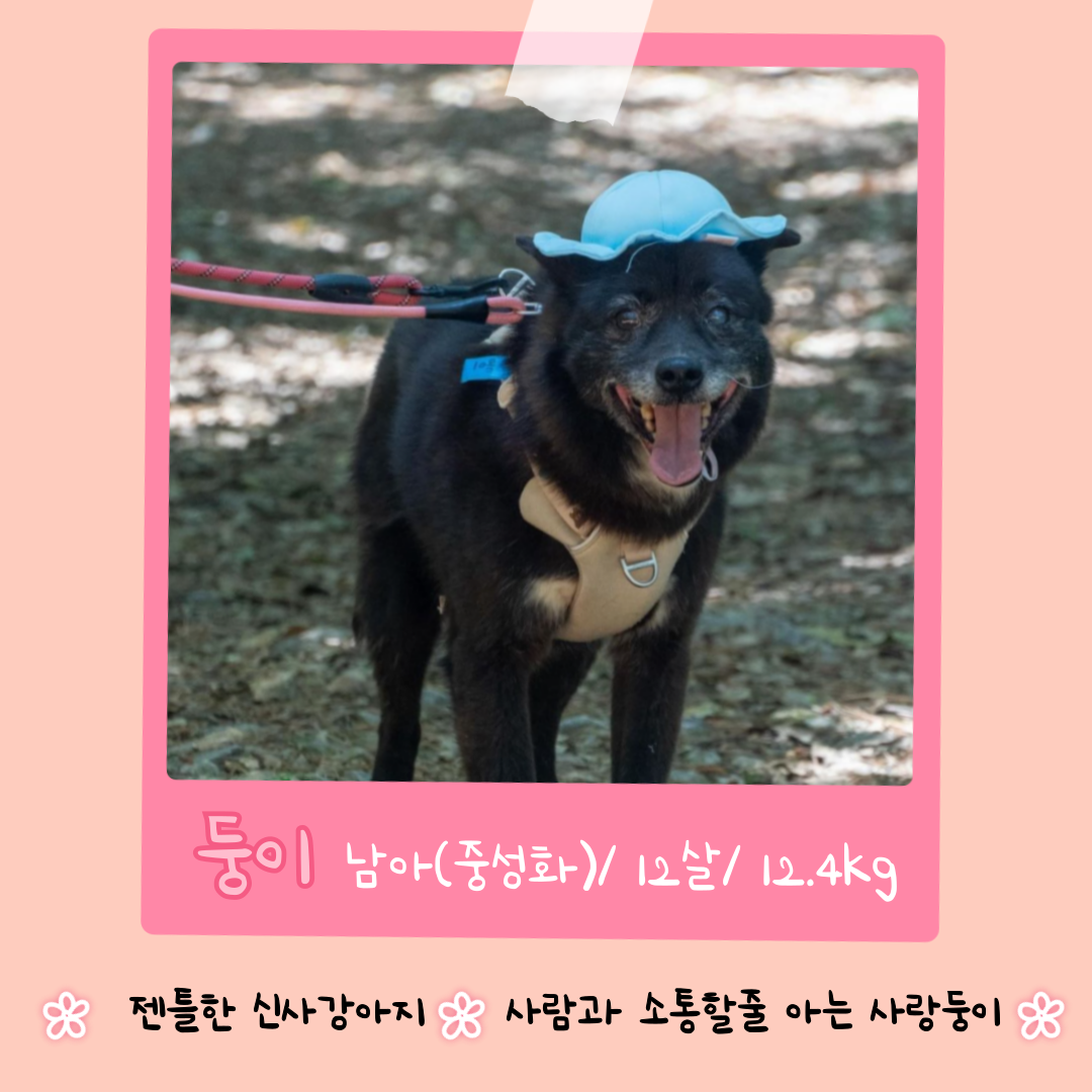 💬 둥이는 이번년도 쉼터장이 된 아이로 사람이나 강아지에게 모두 젠틀한 신사 강아지예요.