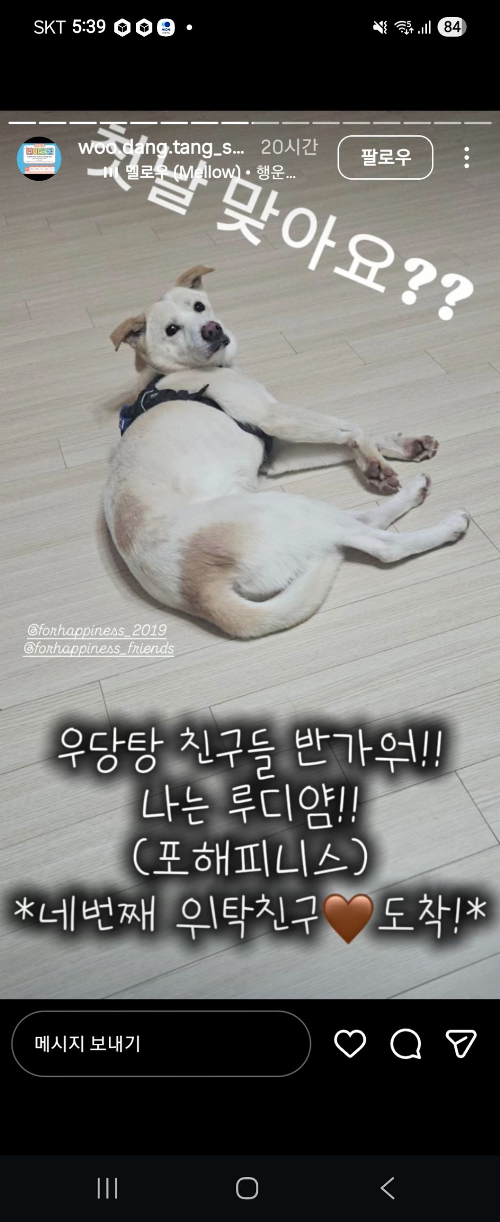 루디(with 감자)의 일상은 우당탕 인스타그램을 통해서 볼 수 있어요!
