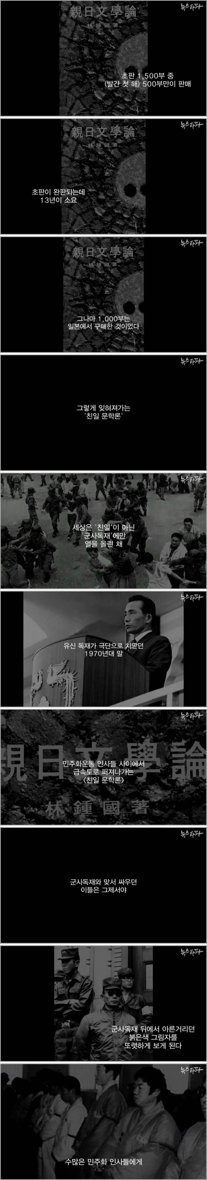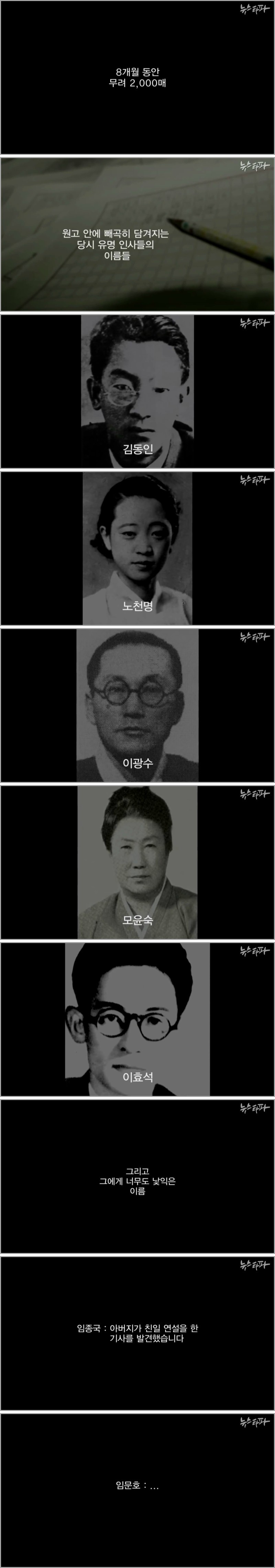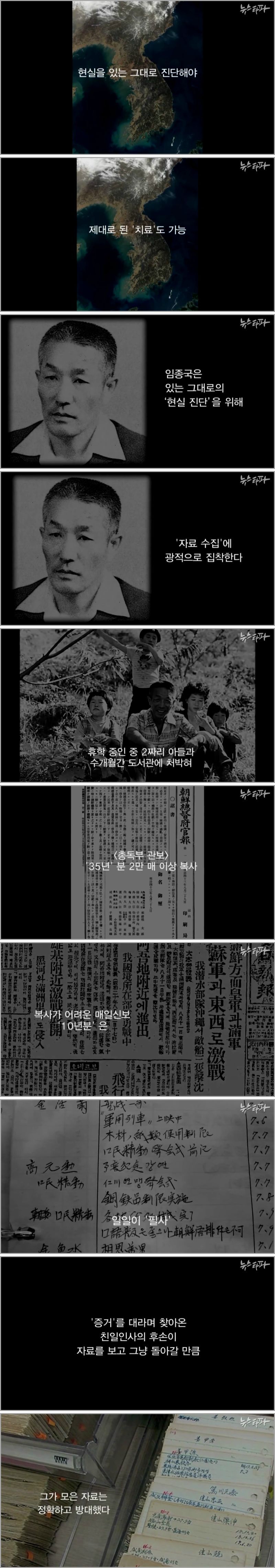 [스크랩] 벼락이 떨어져도 서재를 떠날 수 없던 이유.jpg 작성자정모기|작성시간14.05.08|조회수13 목록 댓글 0 글자크기 작게가 글자크기 크게가 자신의 아버지까지 친일파 명단에 올리면서까지 자신의 전재산과 모든 인생을 쏟아부어 만들었지만....대한민국 아무도 관심을 주지 않음...심지어 친일파 명단에 올라간 이들로부터도 그 어떤 비난이나 반론도 당하지 않음...오욕의 역사이기에 모두가 감추고 싶어하던 과거 였기에 다들 모른척 할뿐.오히려 일본에서 더 관심을 가지고 초판 1500부 중에 1000부를 일본에서 구매심지어 일본 와세대 대학의 근현대사 교수가 직접 번역판까지 일본에서 출간하도록 도와주고일본 대학 교재로 쓸 정도로 일본에서 관심을 받음.그에비해 나머지 500부가 국내에서 다 팔리기까지는 13년이나 걸림부모가 남겨주신 서울 도봉구 창동의 땅 98,000평도 이미 다 거덜났고 충남 천안 산속으로 들어가 밤농사를 지으며 5평짜리 단칸방에서 1876년~1945년의 모든 사회분야의 친일명단을 만드는데 몰두전국을 돌아다니며 그 시대의 모든 신문과 서적들을 조사하고 복사 필사하고 정리하는데 남은 평생을 바치다가 60세의 나이에 작고...그가 남긴 12000명의 친일명단과 친일 행적은그가 죽고 20년뒤가 되서야 친일인명사전으로 새롭게 태어나게됨.하지만 지금도 그때와 마찬가지로 국민들이 관심을 가지지 않음------------------------------------------ ㄷㄷㄷ 다음검색 스크랩 원문 : I Love Soccer (축구동영상) 현재 게시글 추가 기능 열기 북마크 공유하기 신고 센터로 신고 댓글 댓글 0 댓글쓰기 답글쓰기 댓글 리스트