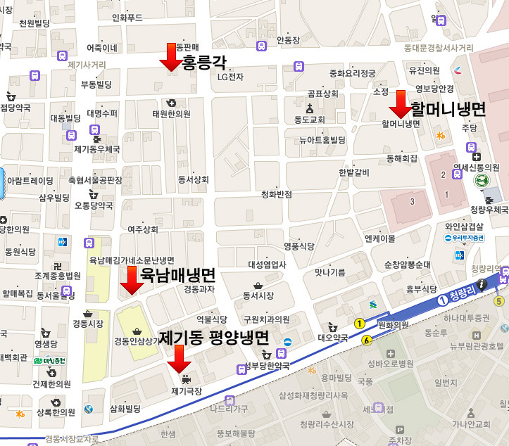 위치 : 동대문구 청량리동 현대코아 뒤 시장통 먹자골목. (현대코아 우측과 KB국민은행 사잇길로