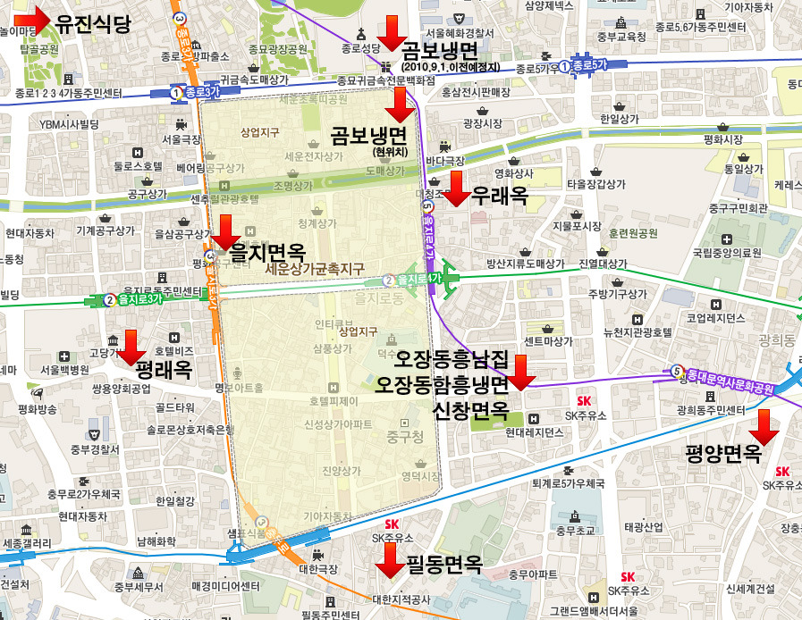 특징 : 서울 시내에서 거의 유일하다시피하게 리스트에 올려놓고 있는 함흥냉면 전문점. 이 집에 가면