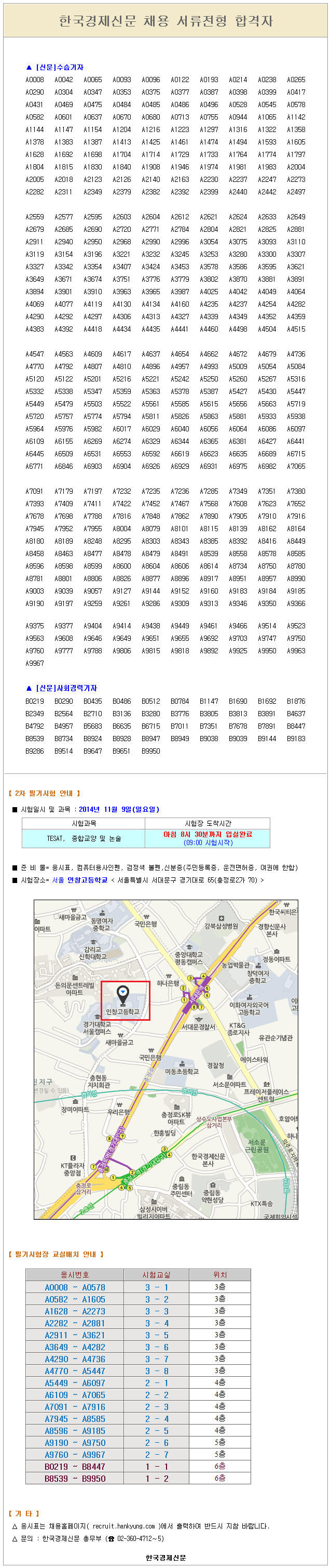 [[알림]]한국경제신문 서류전형 합격자 작성자카페지기(아랑)|작성시간14.11.05|조회수3,143 목록 댓글 2 글자크기 작게가 글자크기 크게가 http://recruit.hankyung.com/bbs/view.php?id=notice&no=4 다음검색 현재 게시글 추가 기능 열기 북마크 공유하기 신고 센터로 신고 댓글 댓글 2 댓글쓰기 답글쓰기 댓글 리스트 작성자나사렛 | 작성시간 14.11.05 한경♡ 해당 댓글은 작성자와 운영진만 볼 수 있습니다. 작성자COMEBACK | 작성시간 14.11.06 수험번호 맞아요 댓글 전체보기