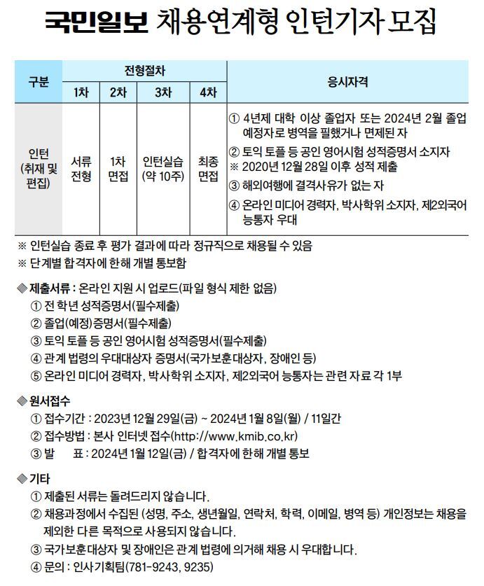 ‘종교부문 채용연계 인턴기자’에 지원·합격