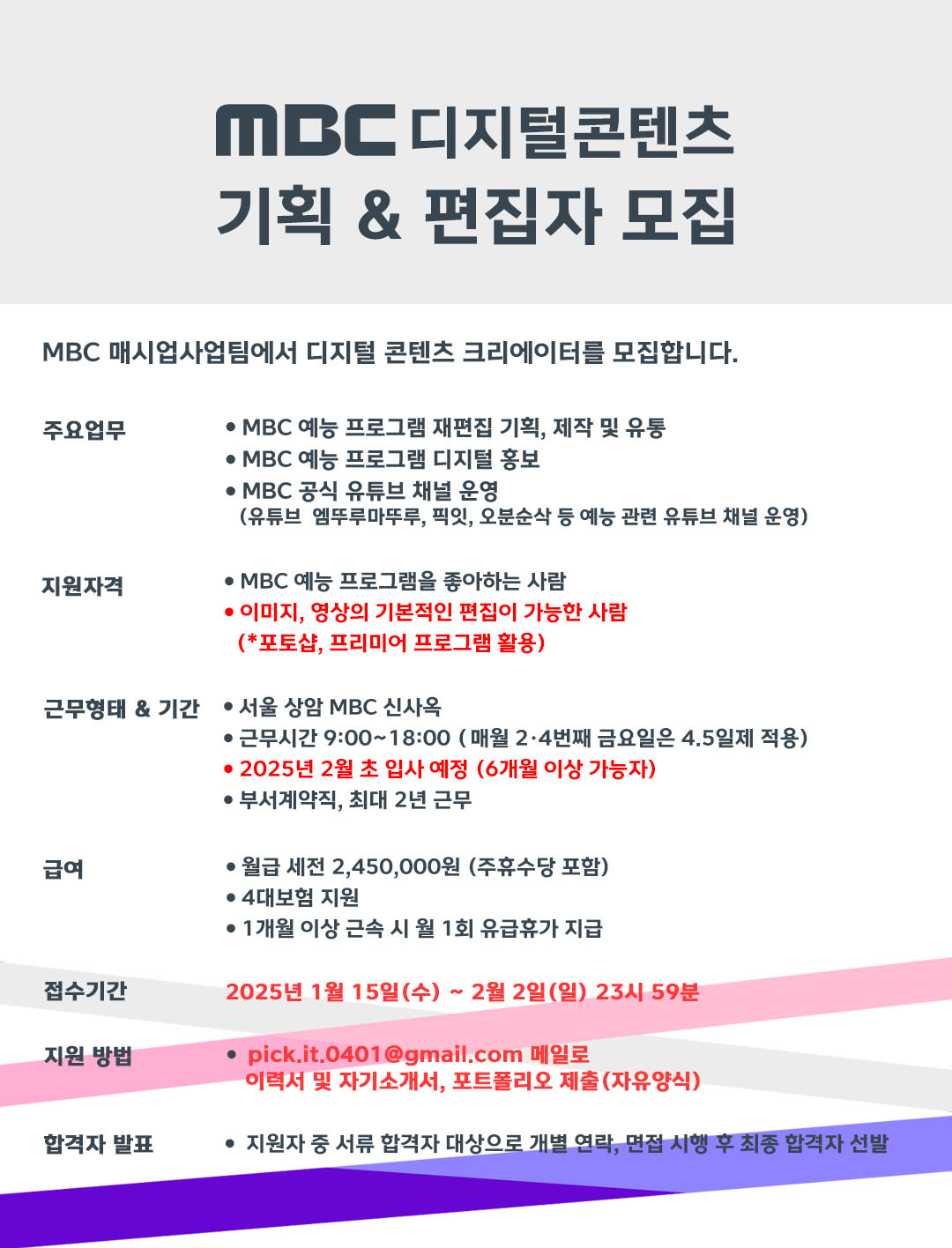 MBC 매시업사업팀에서 디지털 콘텐츠 크리에이터를 모집합니다.