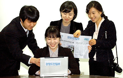 '젊은 신문' '창조적 변화에 앞장서는 신문' 강원도민일보사가 젊고 열정적인 취재·편집, 인터넷뉴스, 편집디자인 분야 제3기 인턴기자 약간명을 모집합니다. 인턴기자들은 편집국에 배치돼 해당분야 현역 기자들과 함께 현장을 뛰어다니며 취재와 기사 작성은 물론 편집 등 지면 제작에 참여하게 됩니다. 도내 일간지 중 유일하게 3년 연속 지역신문발전기금 우선지원대상사로 선정, 강원도 대표신문으로 우뚝 선 강원도민일보에서 '스타 기자'의 꿈을 키우며, 지방이 중심되는 세상을 함께 열어갈 야망있는 젊은이라면 지금 도전하십시오. 강원도민일보는 인턴기자 여러분의 든든한 울타리가 되어 줄 것입니다. -모집 분야 : 취재·편집, 인터넷뉴스, 편집디자인 -모집 인원 : 약간명 -전형 방법 : 1차 서류전형, 2차 논문· 실기 및 면접 -지원 자격 : * 공통사항 1. 남자는 78년 1월1일 이후, 여자는 80년 1월1일 이후 출생한 자 2. 해외여행에 결격사유가 없는 자 3. 병역필 또는 면제자 4. 공인 영어성적(TOEIC·TOEFL·TEPS) 우수자는 우대함 * 인터넷뉴스 기자 1. 컴퓨터와 인터넷 관련지식이 풍부한 자 2. 웹사이트 편집 및 관리 경험자 우대 * 편집디자인 기자 1. 일러스트레이터와 포토샵 사용이 가능한 자 2. 미술학과 및 관련학과 전공자 우대 -제출서류 1. 이력서(연락처 기재) 2. 자기소개서(1000자 내외로 A4 용지에 작성) 3. 최종 학력 졸업(예정) 증명서 및 전학년 성적표 4. TOEIC, TOEFL, TEPS 성적표 -전형일정 * 서류 접수: 2008년 2월19일 ~27일 * 논문· 실기 및 면접 시험 :2월29일 오전 10시 본사 회의실 (서류 합격자에 한해 개별 통보) * 최종 합격자 발표: 3월 1일 강원도민일보 지상 및 인터넷 * 서류 접수처 : 우편번호 200-707 춘천시 후평1동 257-27 강원도민일보사 총무국(문의전화 260-9100) * 이메일 접수도 가능합니다( webmaster@kado.net ) * 우편접수는 마감일 소인분까지 유효합니다. * 제출된 서류는 일체 반환하지 않습니다. * 서류제출 시 모집분야ㆍ휴대전화번호 명시 - 강원도민일보사 - | ||||||