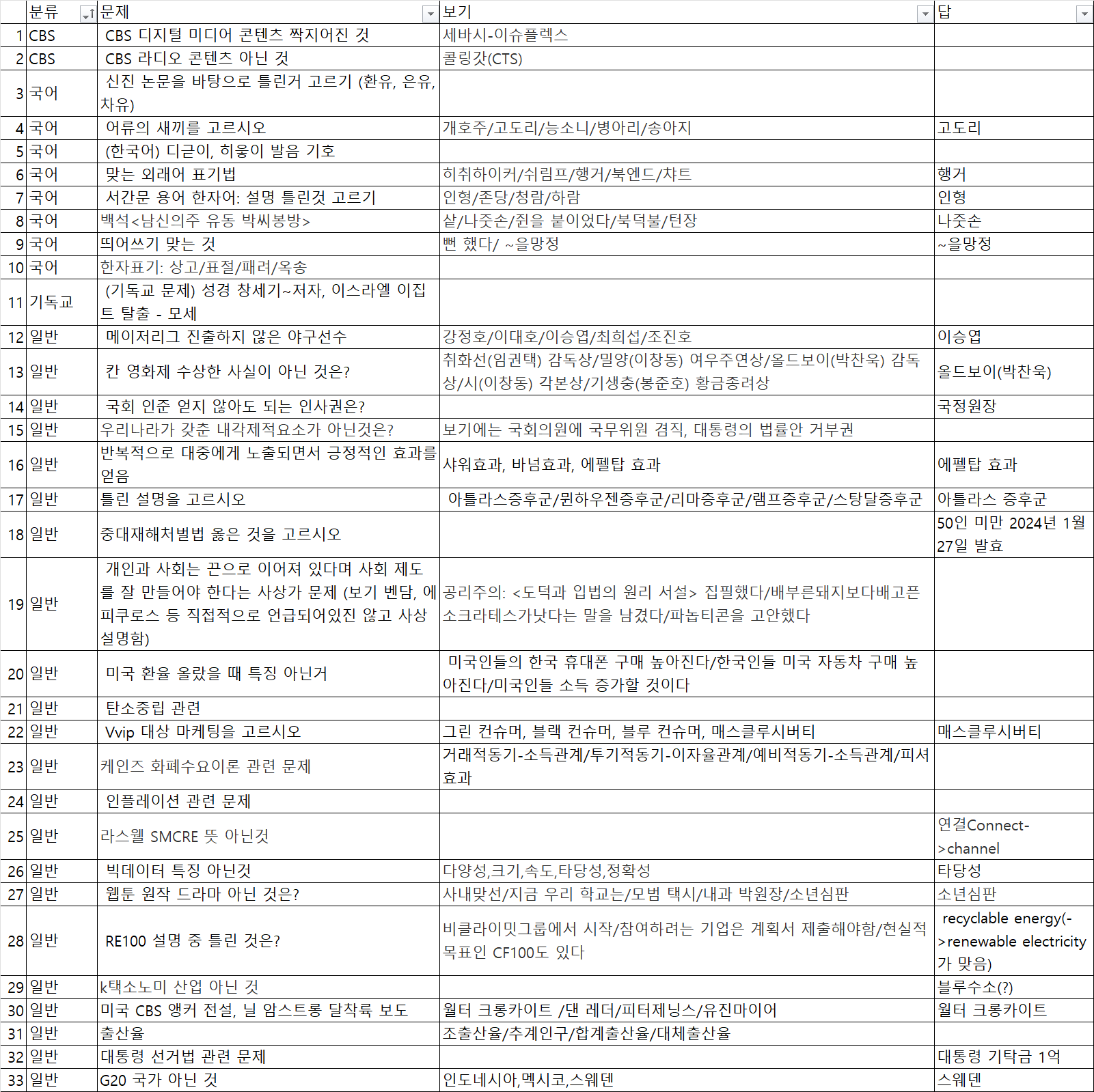어려워서 대부분 기억이 안나네요. 국어, 경제학, 언론학, cbs 관련 문제도 있었습니다. 댓 달아주시면 지속적으로 수정 및 추가하겠습니다