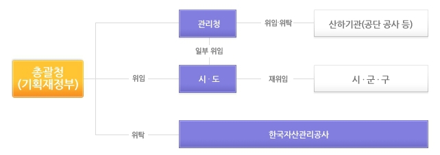 1. 관리청(일반재산의 경우 제42조제1항에 따라 관리ㆍ처분에 관한 사무를 위임받은 자를 포함한다. 이하 이 호에서 같다)은 직접 또는 관할 세무서장이나 지방자치단체의 장(이하 "세무서장등"이라 한다)에게 위임하여 징수할 수 있다. 이 경우 관할 세무서장등은 그 사무를 집행할 때 위임한 관리청의 감독을 받는다.