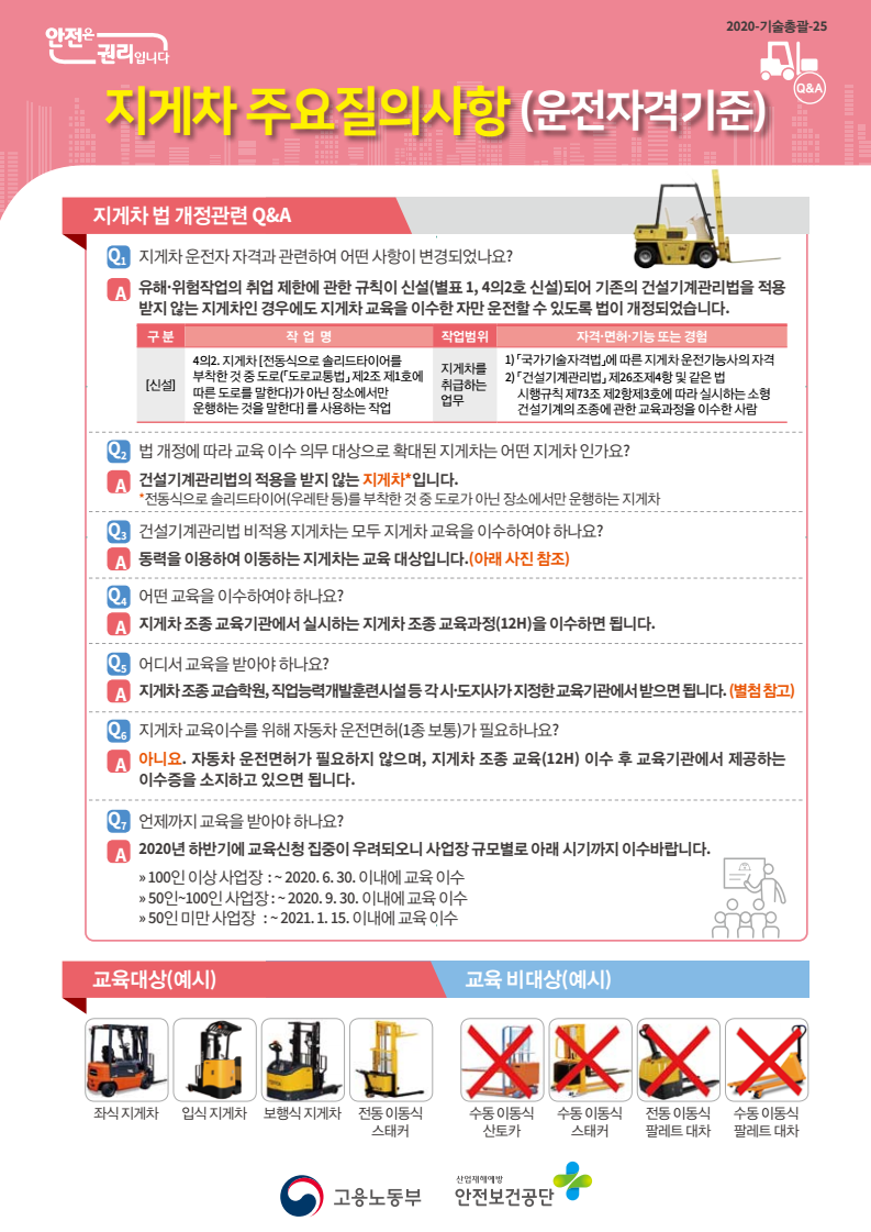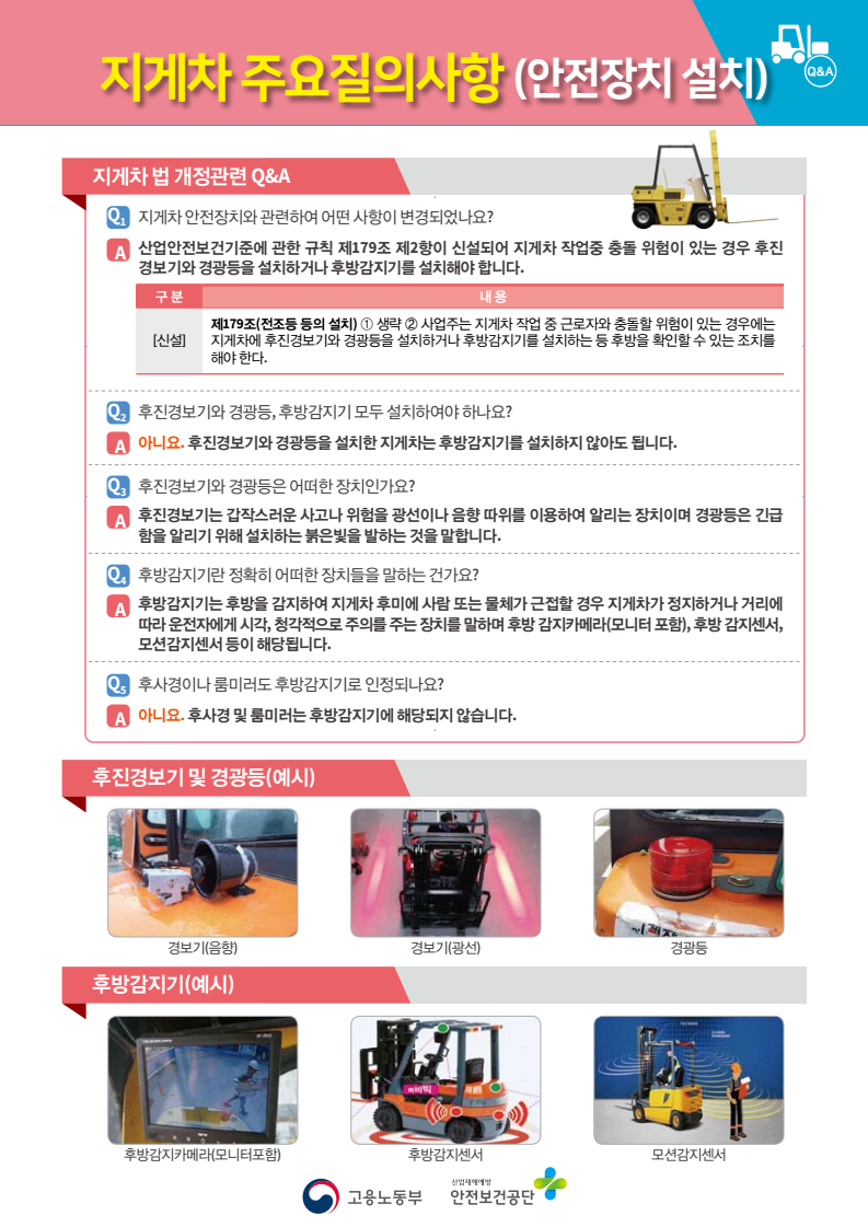 고용노동부 산업안전보건법 지게차 관련 일부 법 개정 사항이 있어 다시 한번 알려 드립니다.