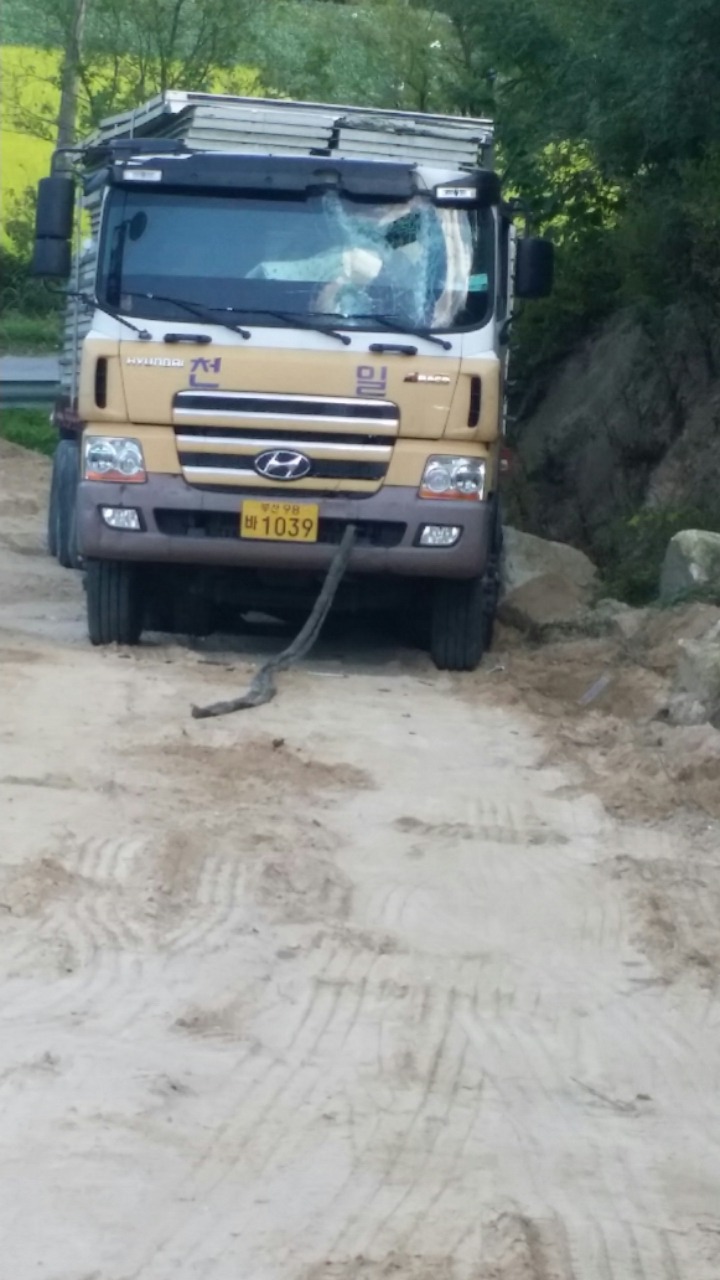 절대로 견인할때 견인 체인 근처에가지 마십시오