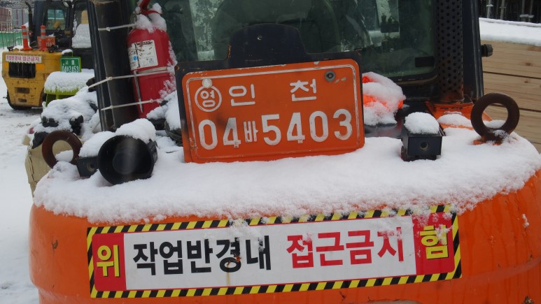 참고로 위의 번호판 앞 번호가 04로 표시되어 있는데 01은 불도저 02는 굴삭기 04는 지게차 05는 덤프트럭이라는 뜻이 됩니다