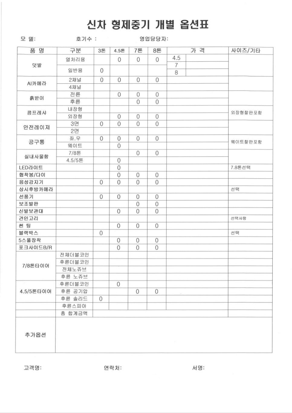*(주)형제중기 자체 개발 옵션