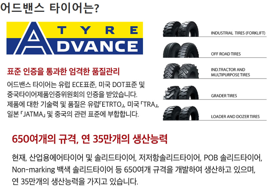 특히 지게차 통타이어 총판으로서 다양한 국산·수입 브랜드를 보유하고 있으며,